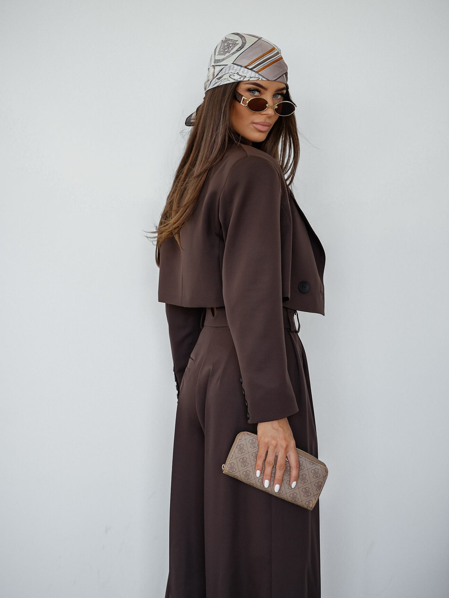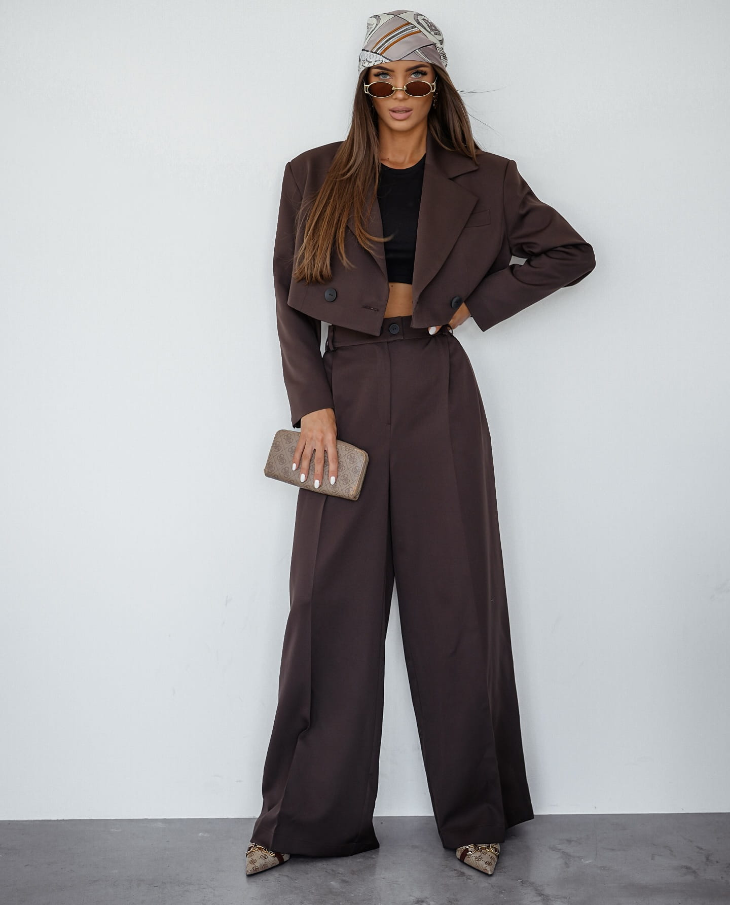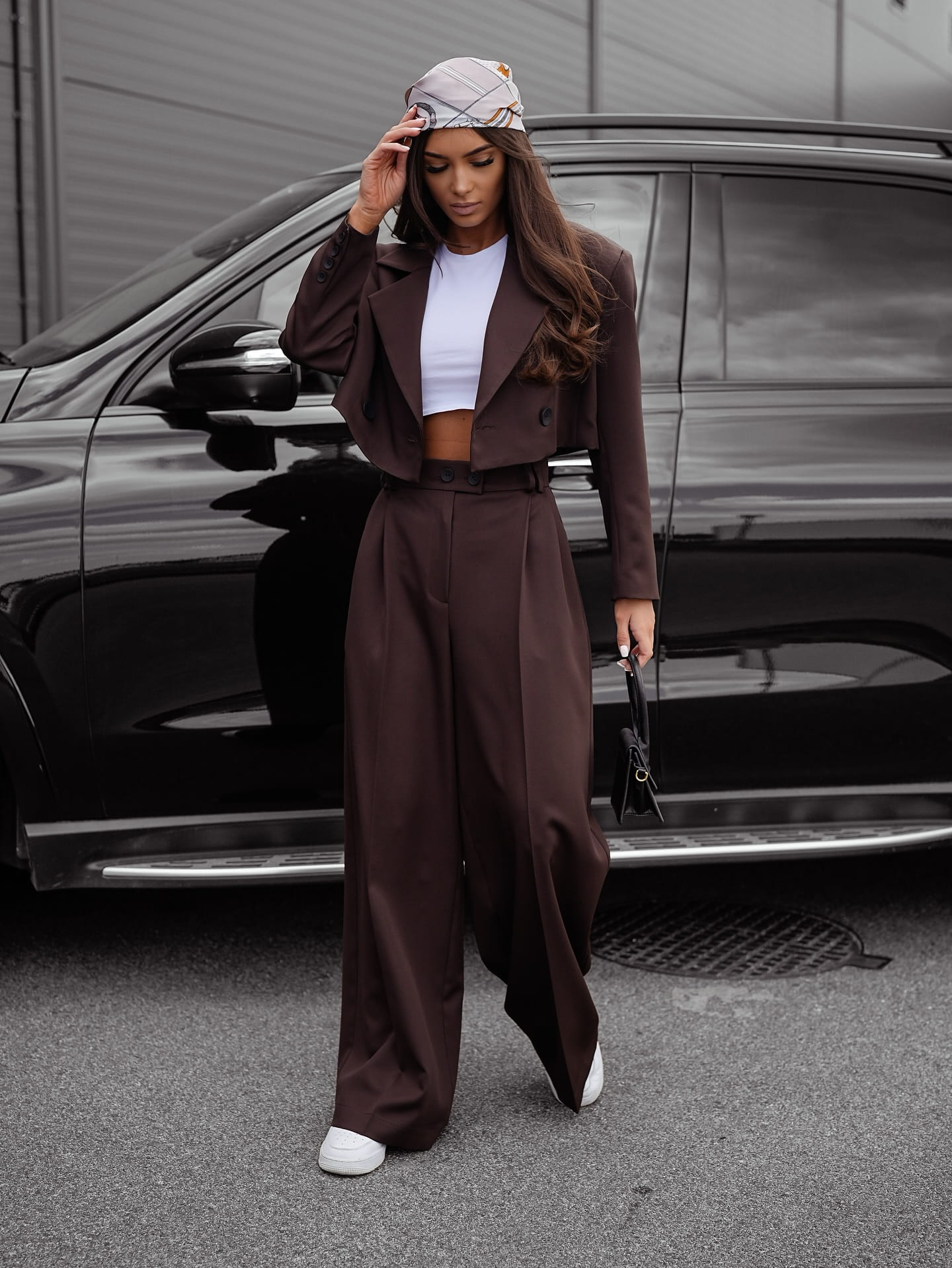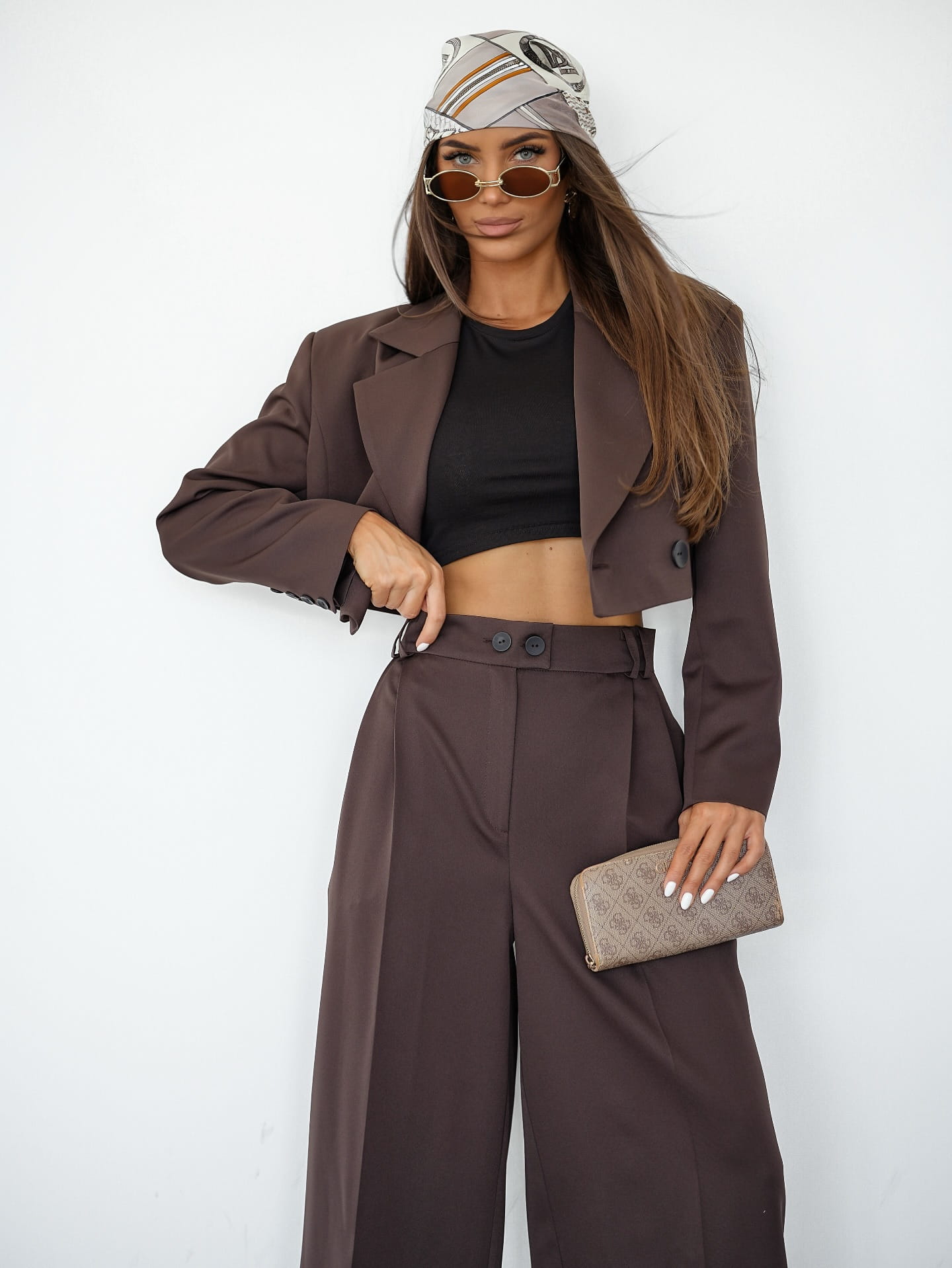 Eleganckie spodnie damskie z szeroką nogawką brązowe Me Gusta