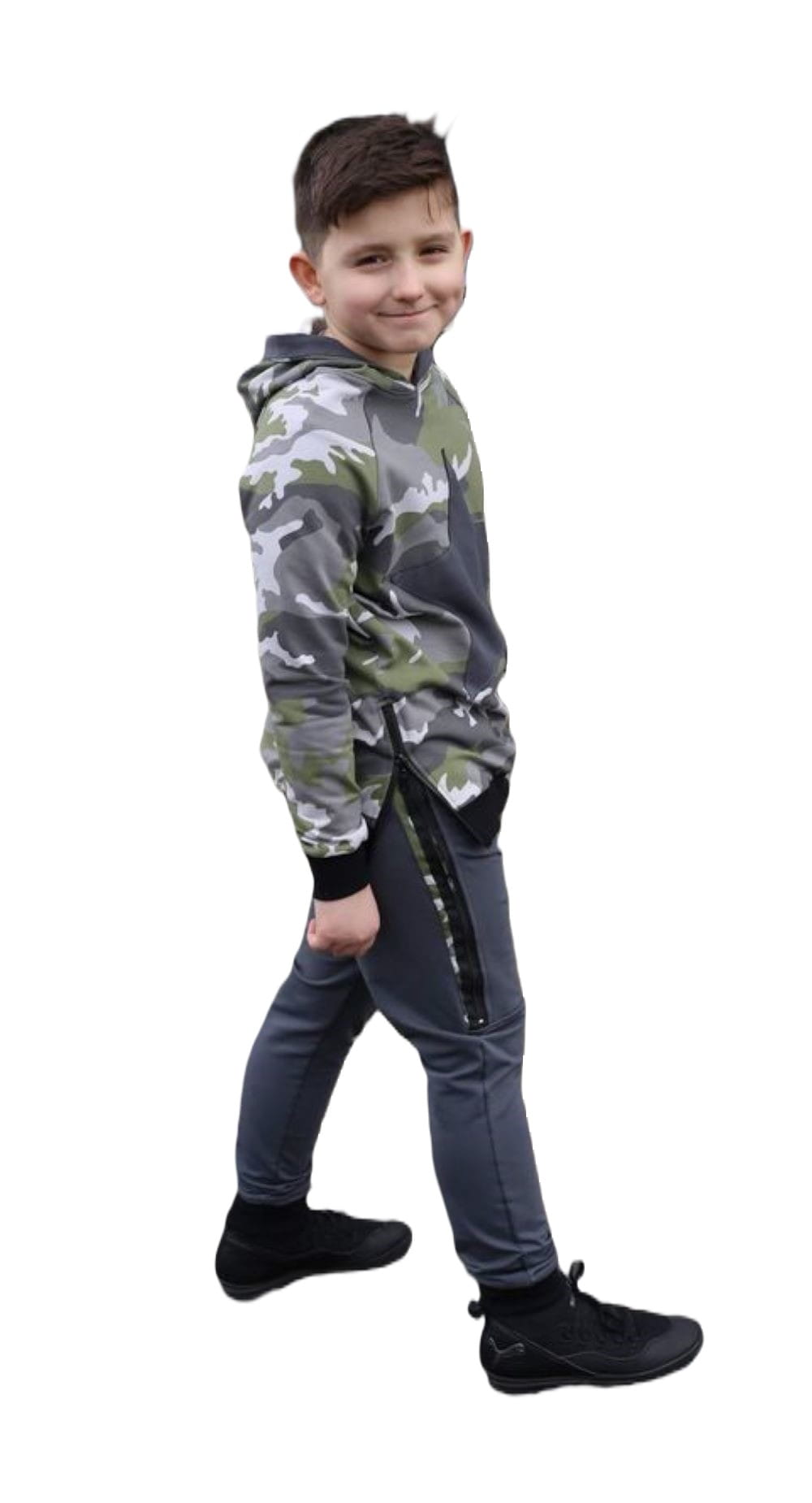 Grafitowe spodnie z lampasem i zamkiem powstały przez polską markę Caramba Mamma z wysokiej jakości dzianiny dresowej, która jest nie tylko modna, ale wygodna i trwała w użytkowaniu.