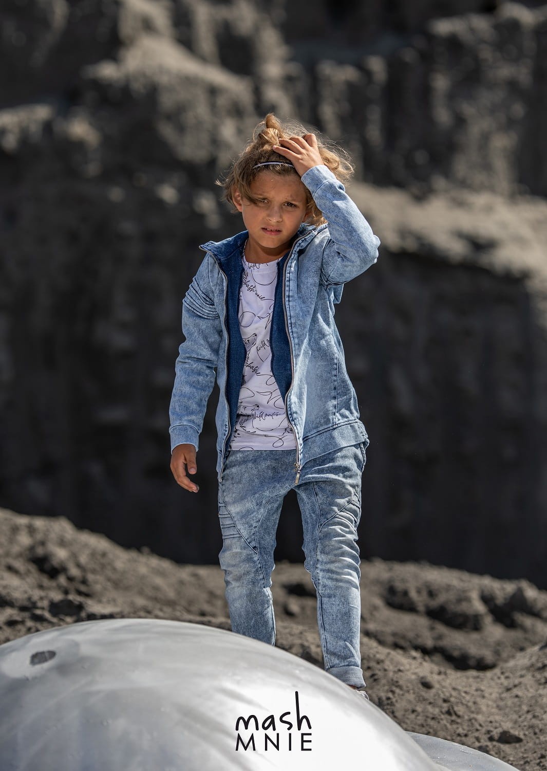 Niebieska bluza a'la jeansowa z kolekcji REVOLUTION uszyta została w Polsce przez markę Mash MNIE. Dziecięca bluza z kapturem i zamkiem wykonana z komfortowej w noszeniu dzianiny dresowej o wyglądzie modnego jeansu, dzięki czemu jest mięciutka i komfortowa w noszeniu.