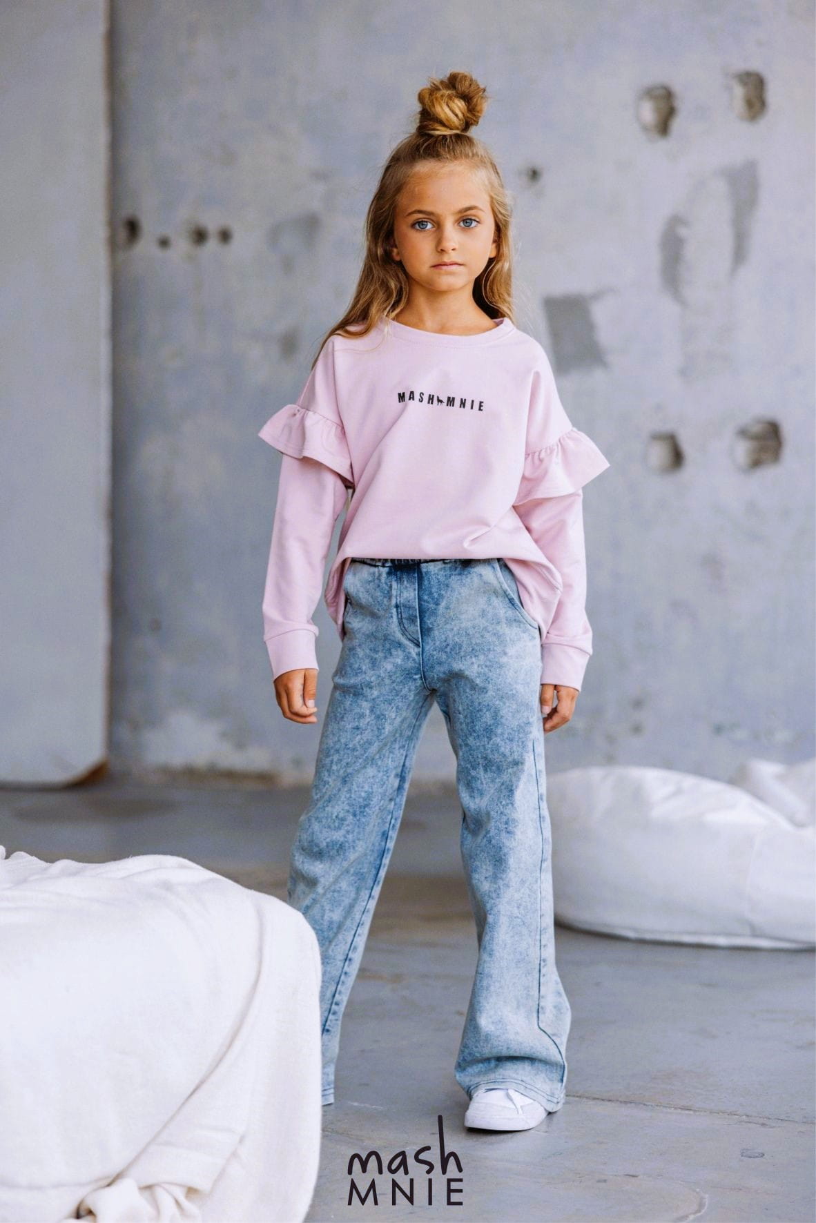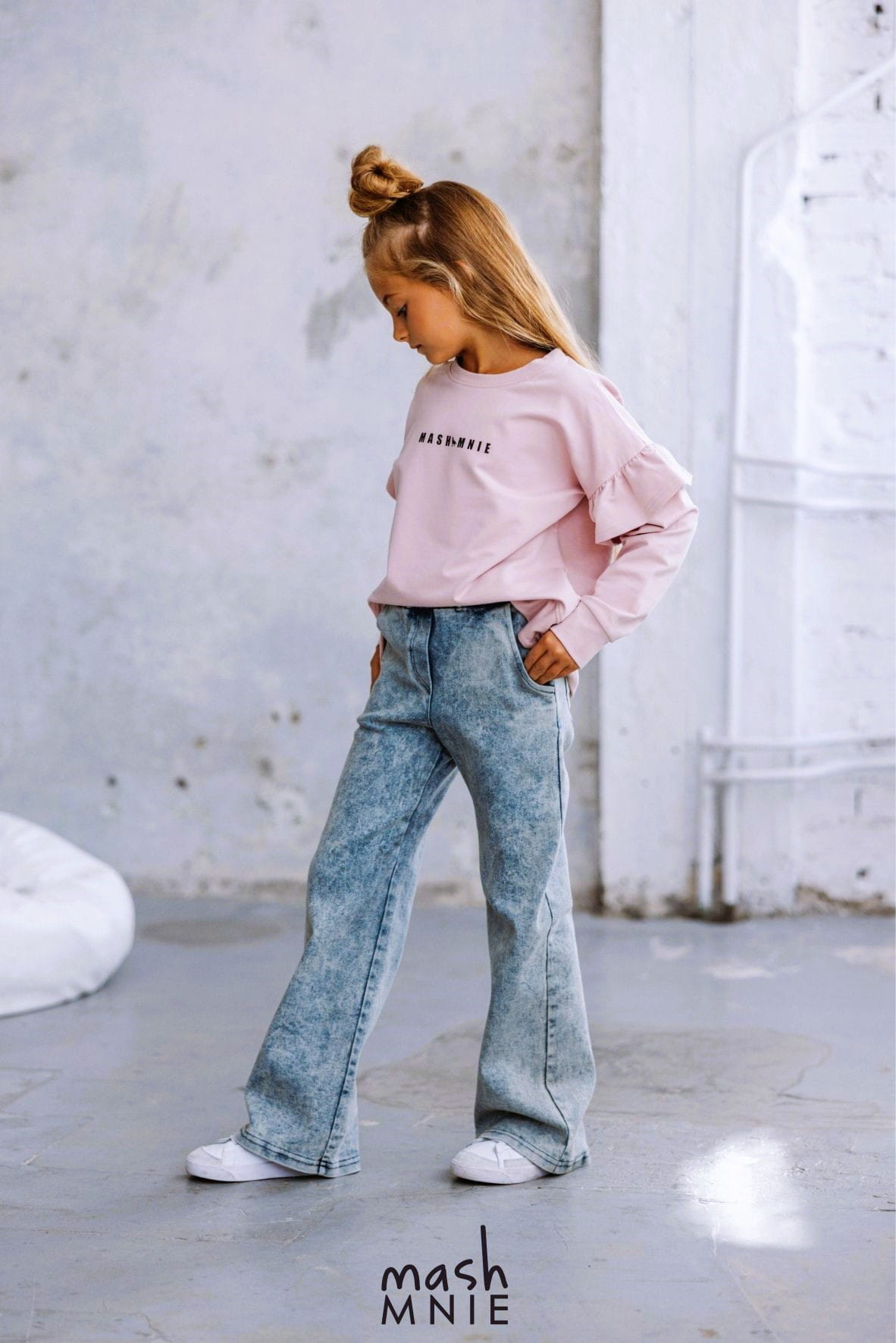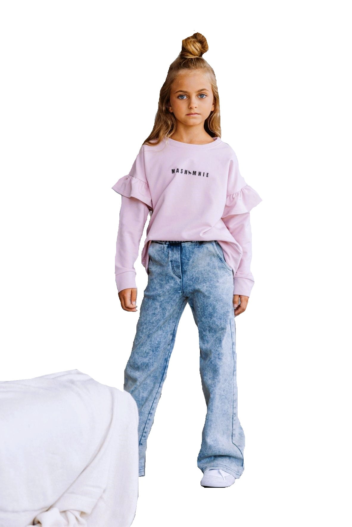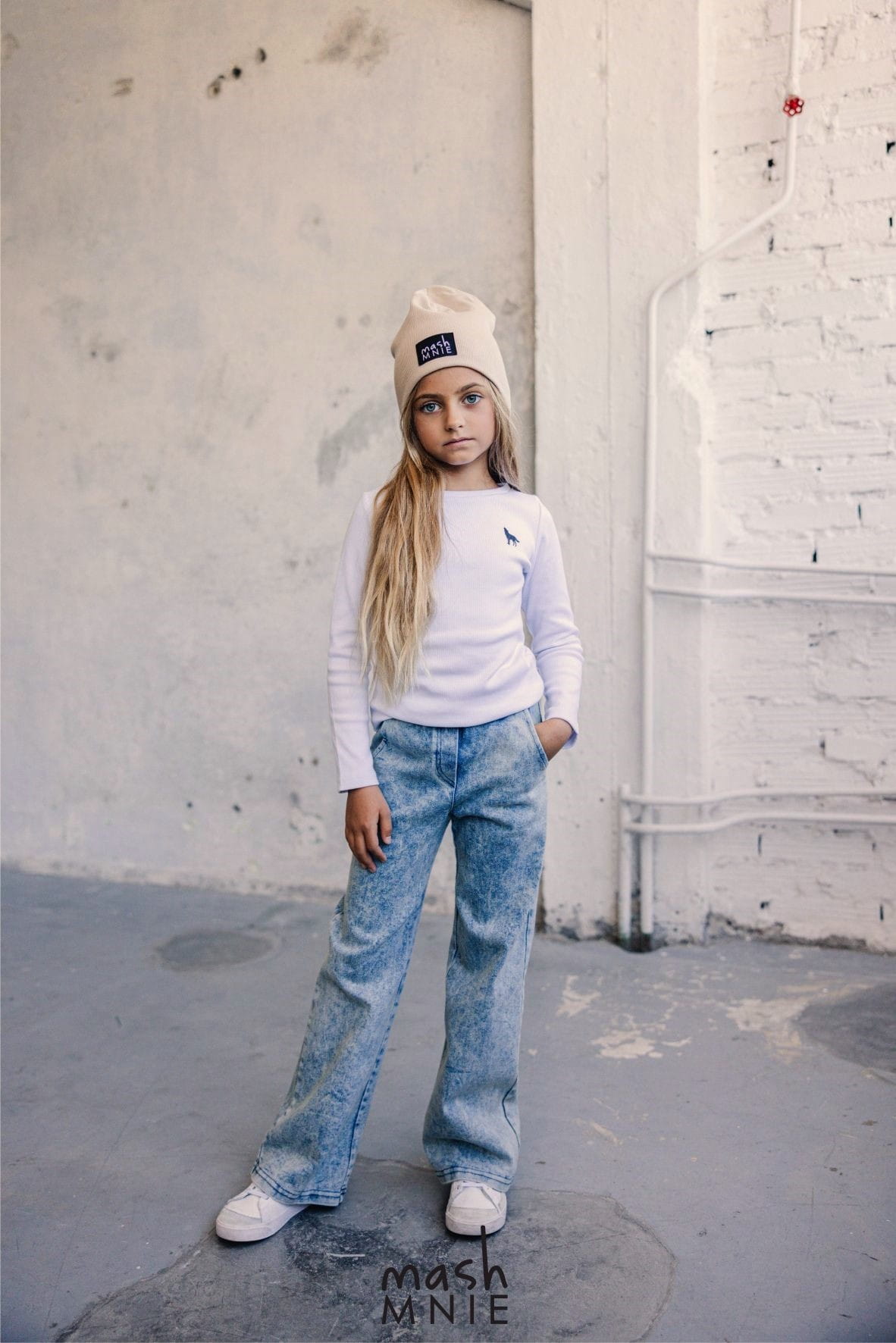 Jeansowe spodnie o luźnym kroju od marki Mash MNIE z kolekcji THE WOLVES. Modne spodnie dla dziewczynki wykonane z miękkiej tkaniny, dzięki czemu są komfortowe w noszeniu.