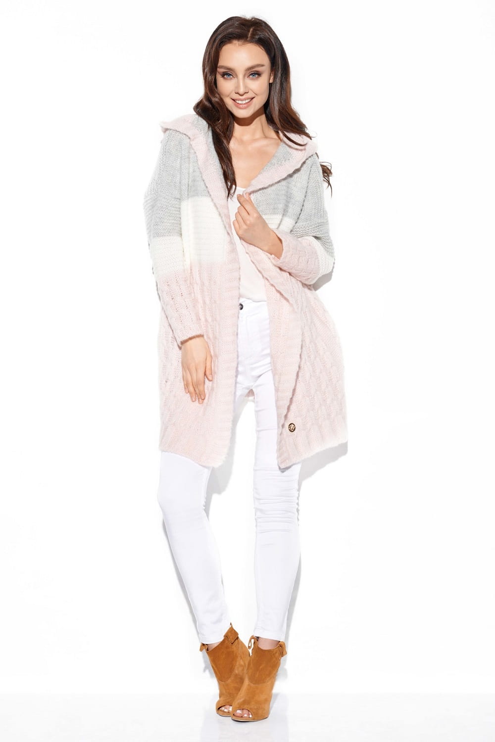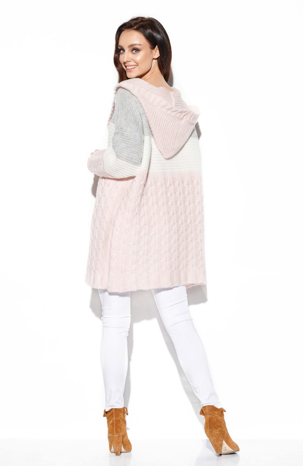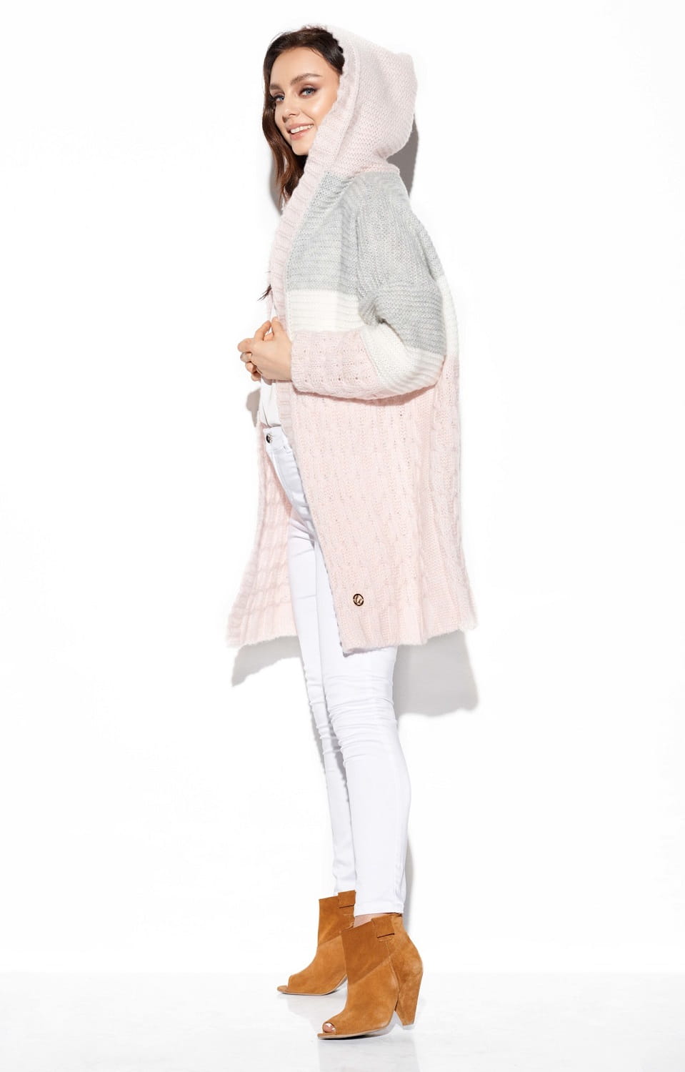 Kardigan z kapturem oversize pasy różowy szary Lemoniade