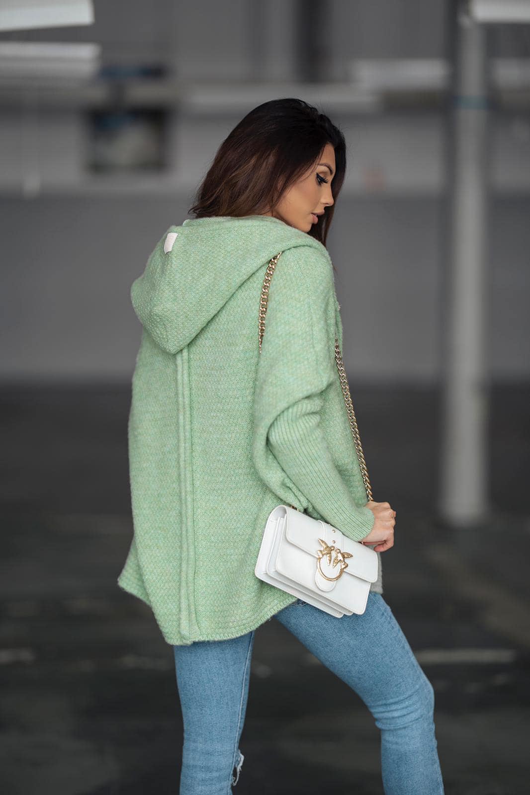 Zielony kardigan oversize to model, który przyciąga spojrzenia...