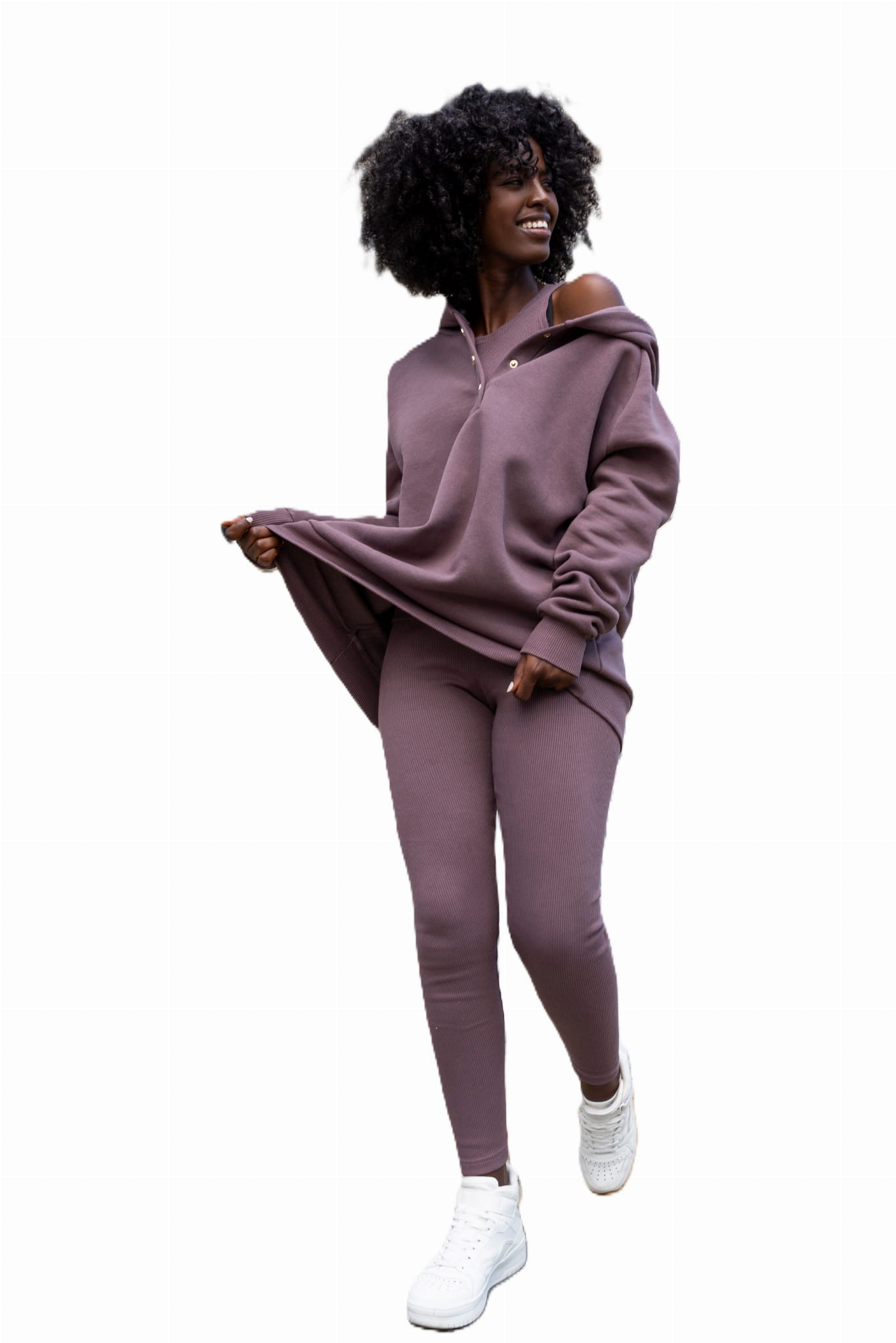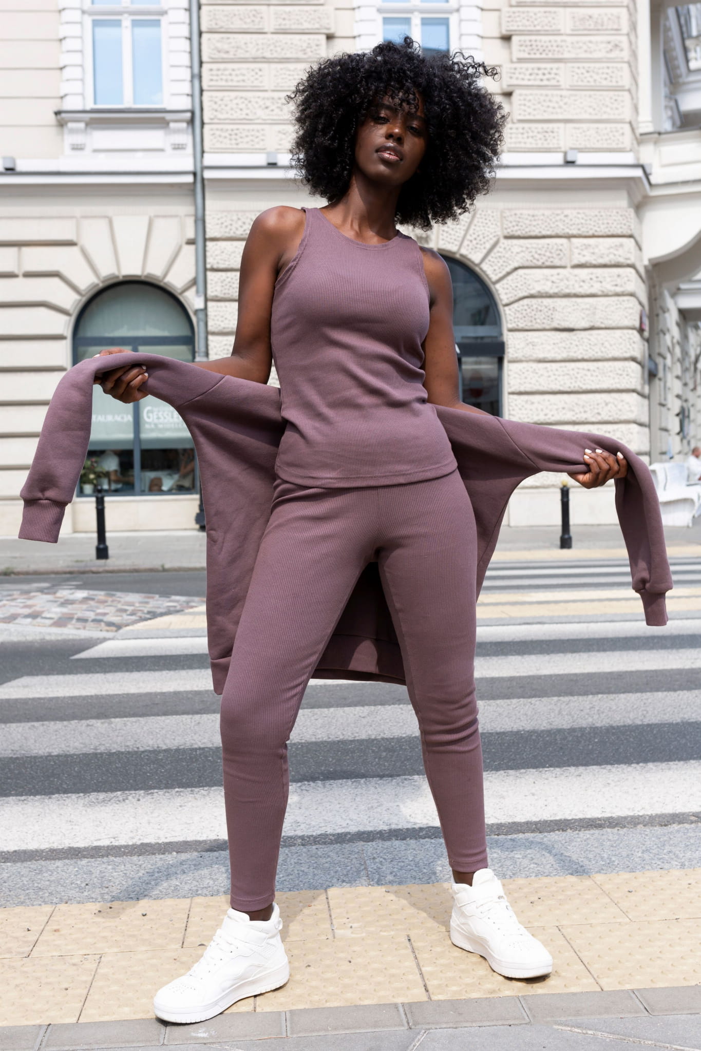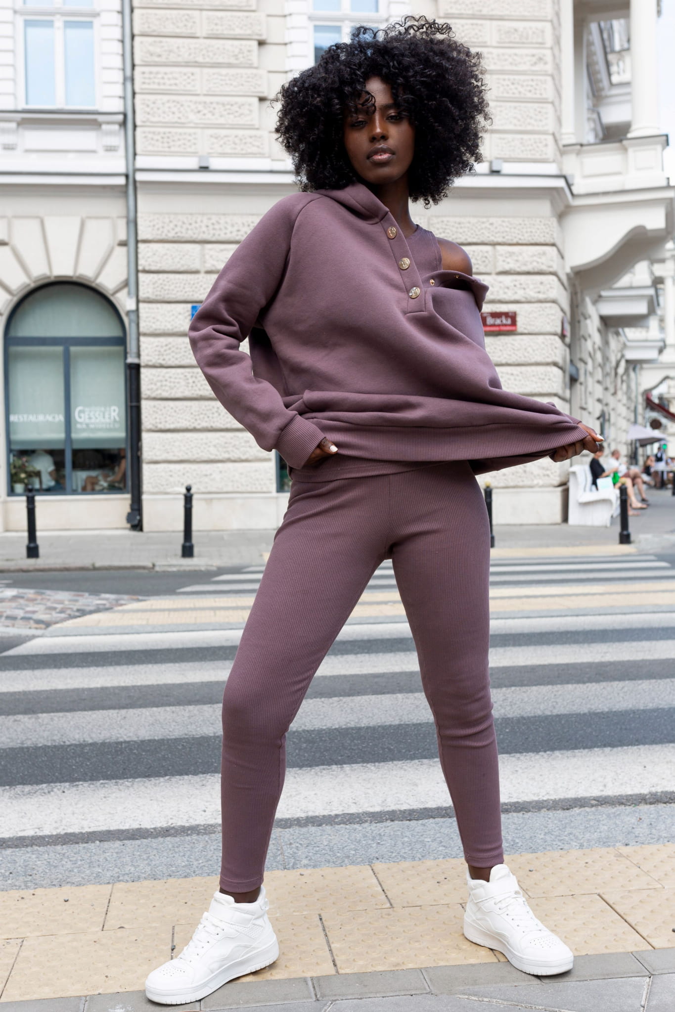 Stylowy i komfortowy, ten komplet to uniwersalna propozycja zarówno na leniwe dni w domu, jak i na swobodne wyjścia do miasta.