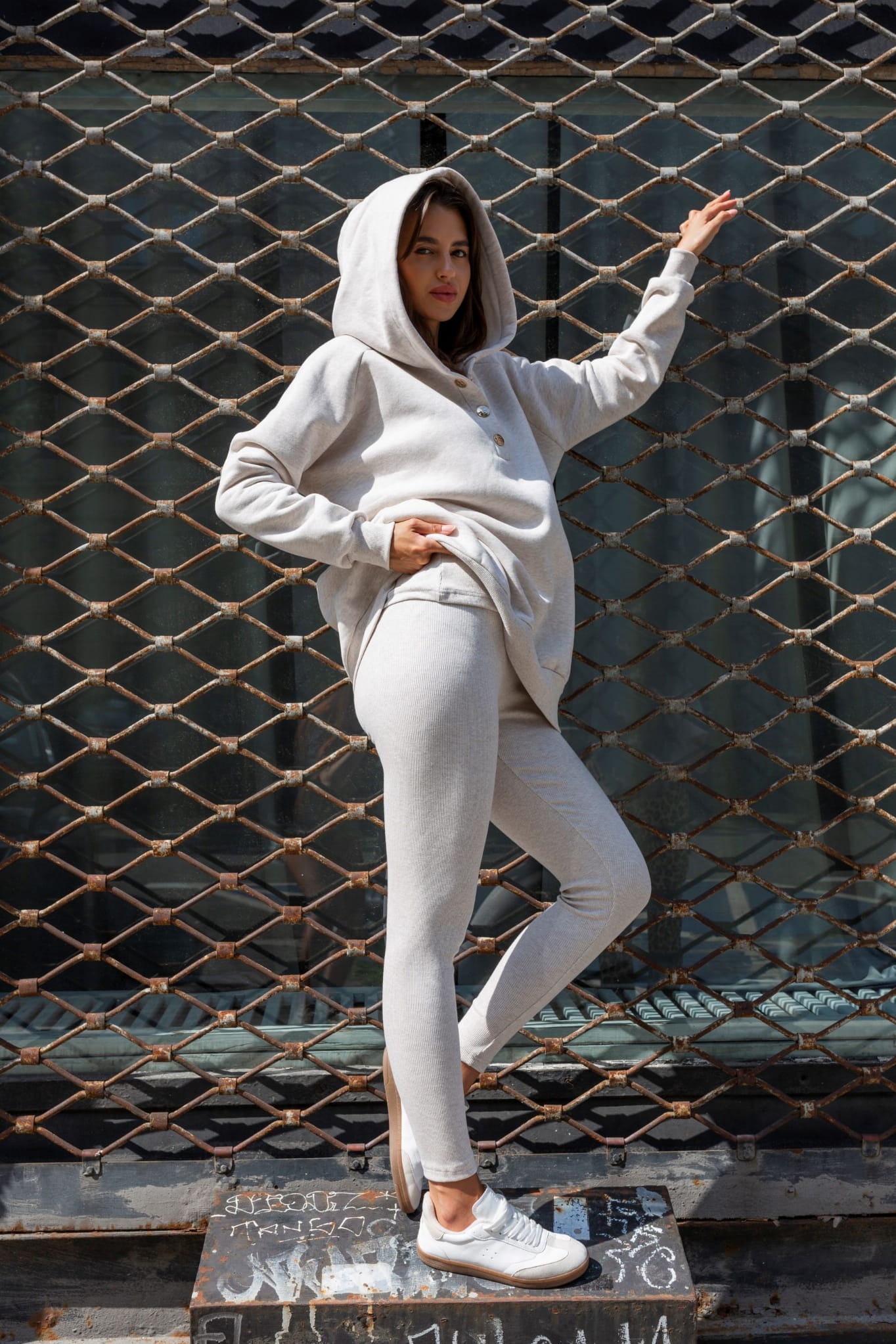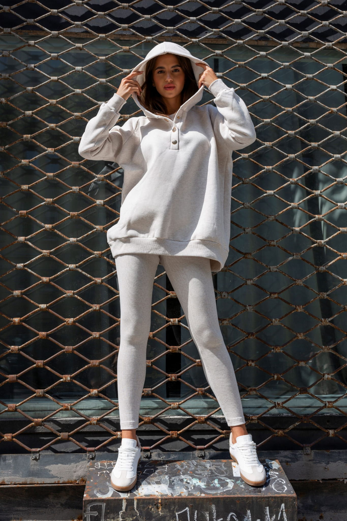 Beżowa bluza z kapturem: