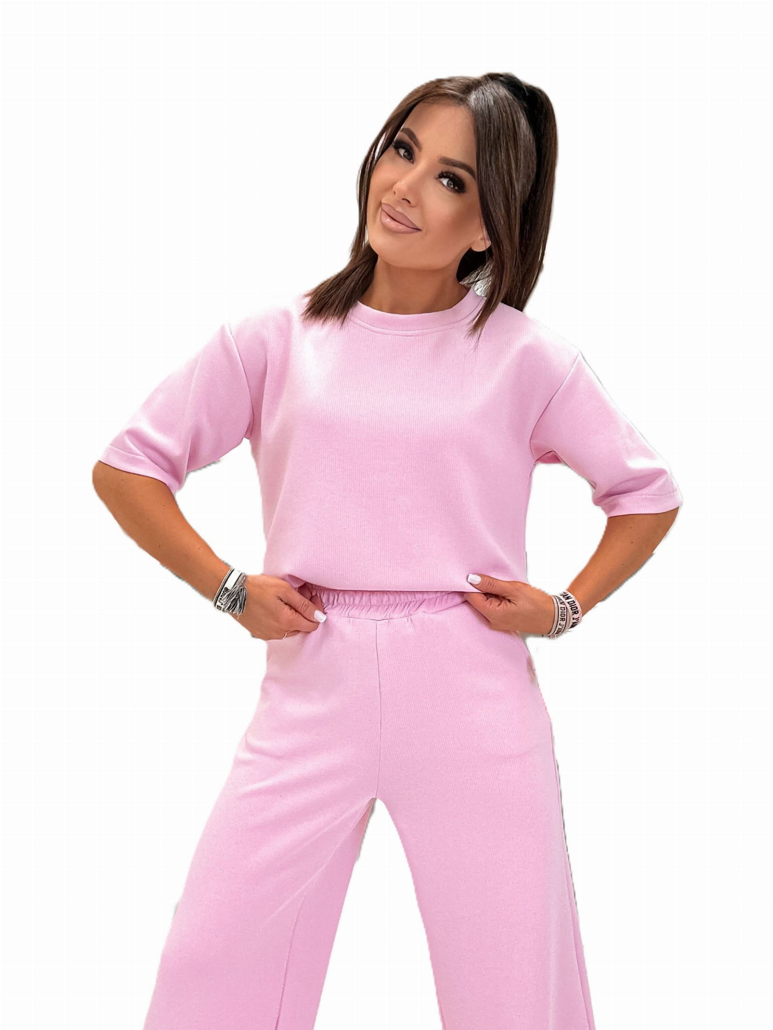 Komplet damski szerokie spodnie i bluzka różowy Moon