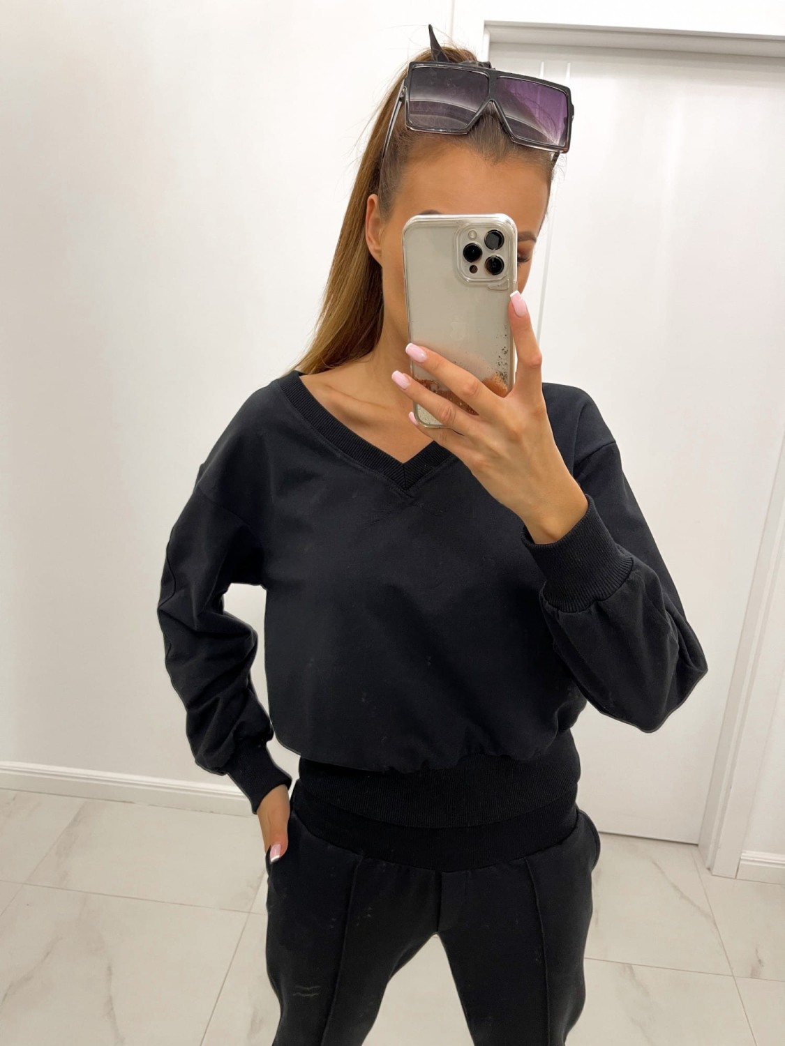 Czarna bluza dresowa posiada: