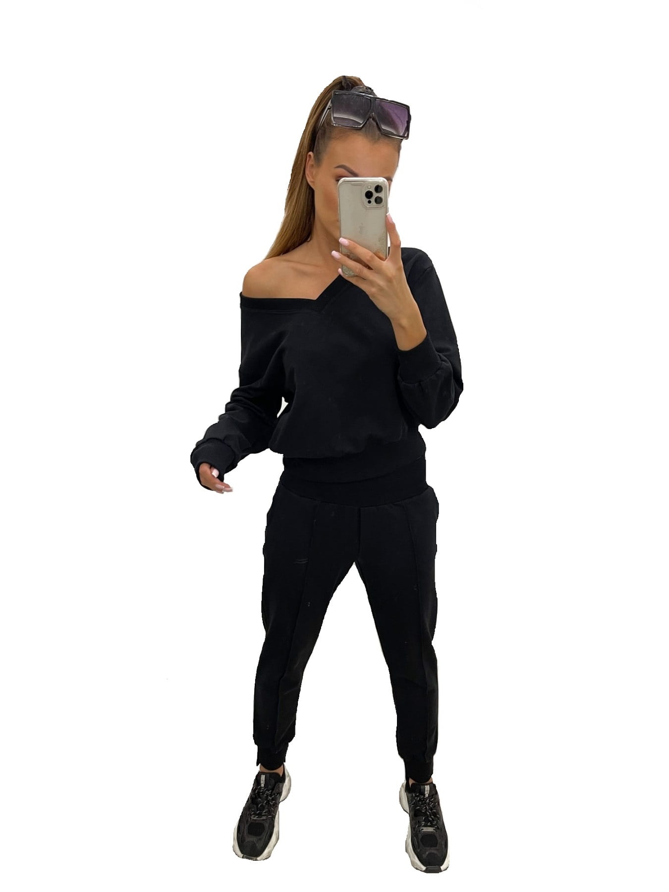 Czarny dres damski świetnie sprawdza się zarówno w stylizacjach sportowych jak i eleganckich.