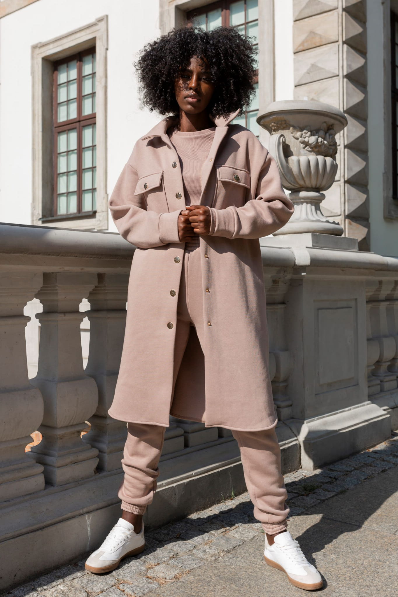 Spodnie i katana wykonane są z wysokiej jakości bawełny, ocieplonej od spodu delikatnym meszkiem, co zapewnia komfort i ciepło w chłodniejsze dni. Bluzka, uszyta z prążkowanej bawełny, idealnie podkreśla sylwetkę, a otwór na kciuk dodaje nowoczesnego charakteru i funkcjonalności.