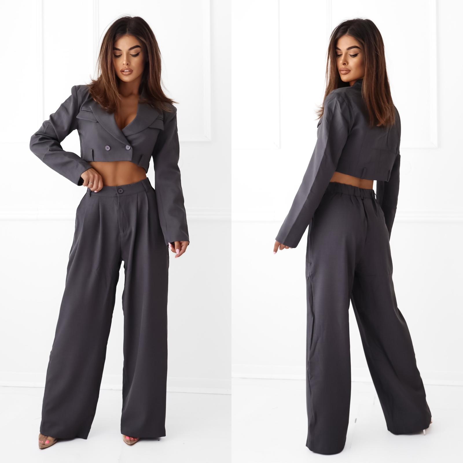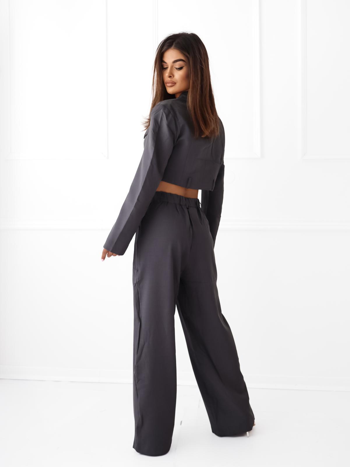 Komplet garnitur damski szerokie spodnie krótka marynarka grafitowy ELSA.M by may