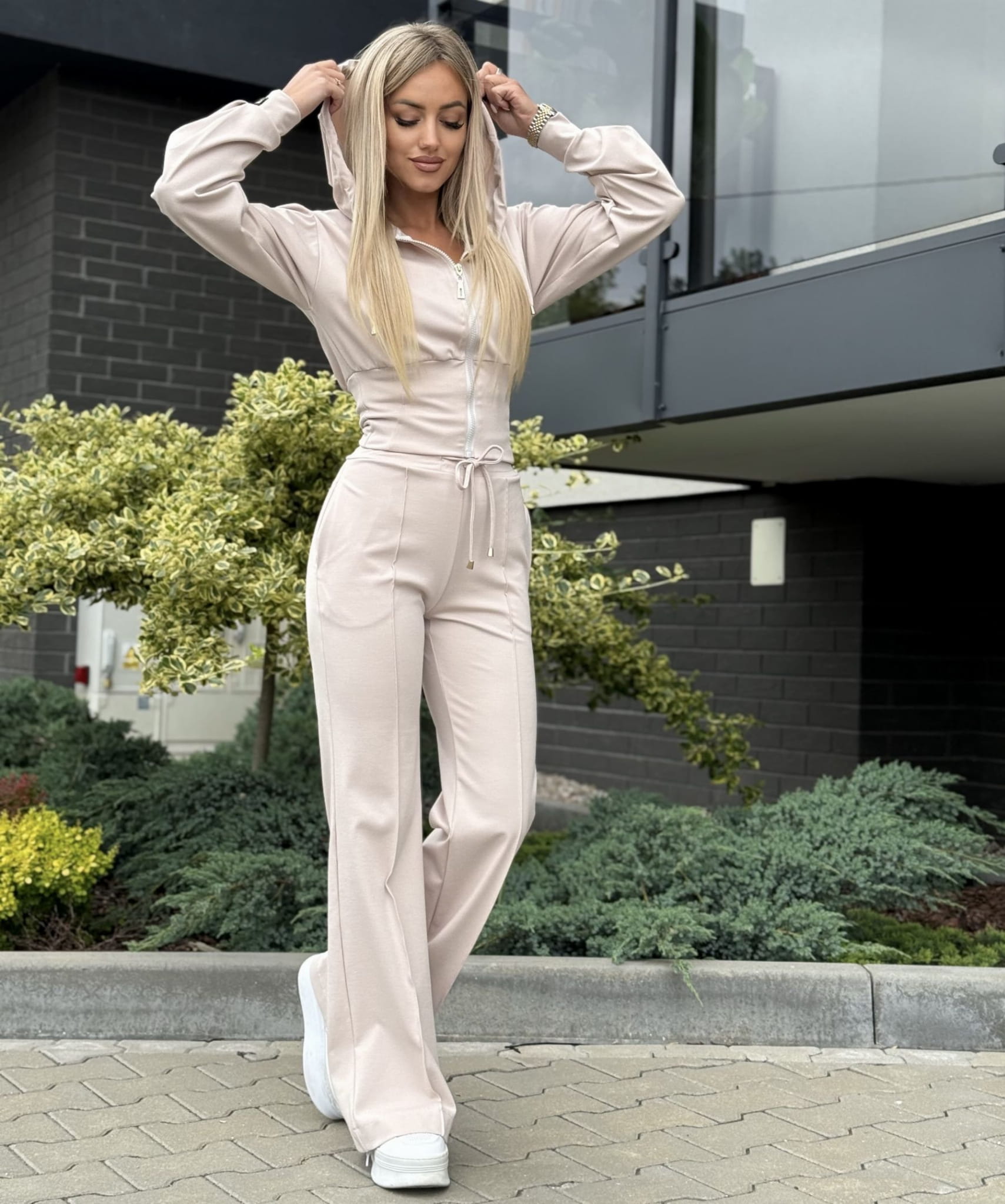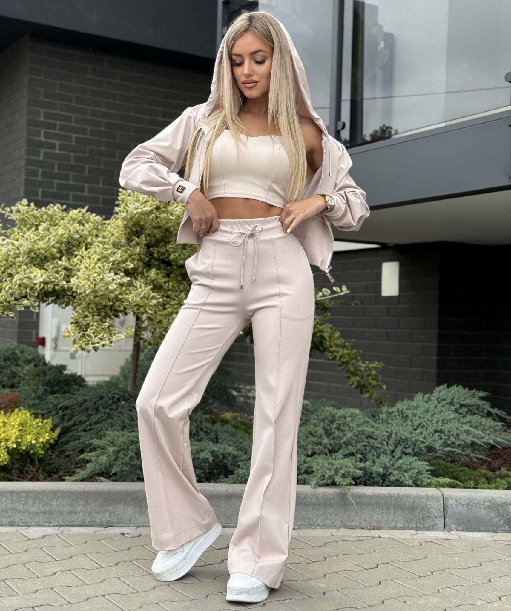 Komplet spodnie z szeroką nogawką i bluza beżowy Marina