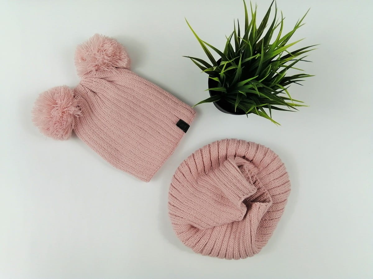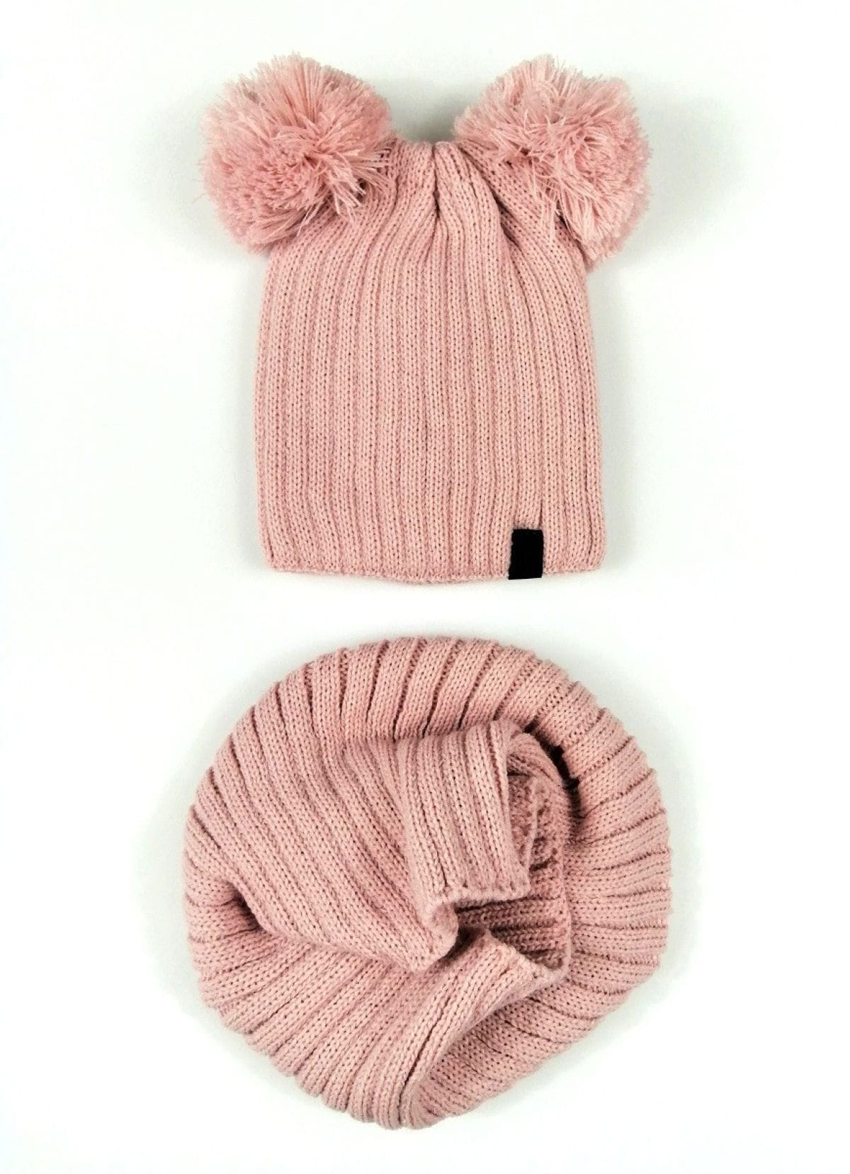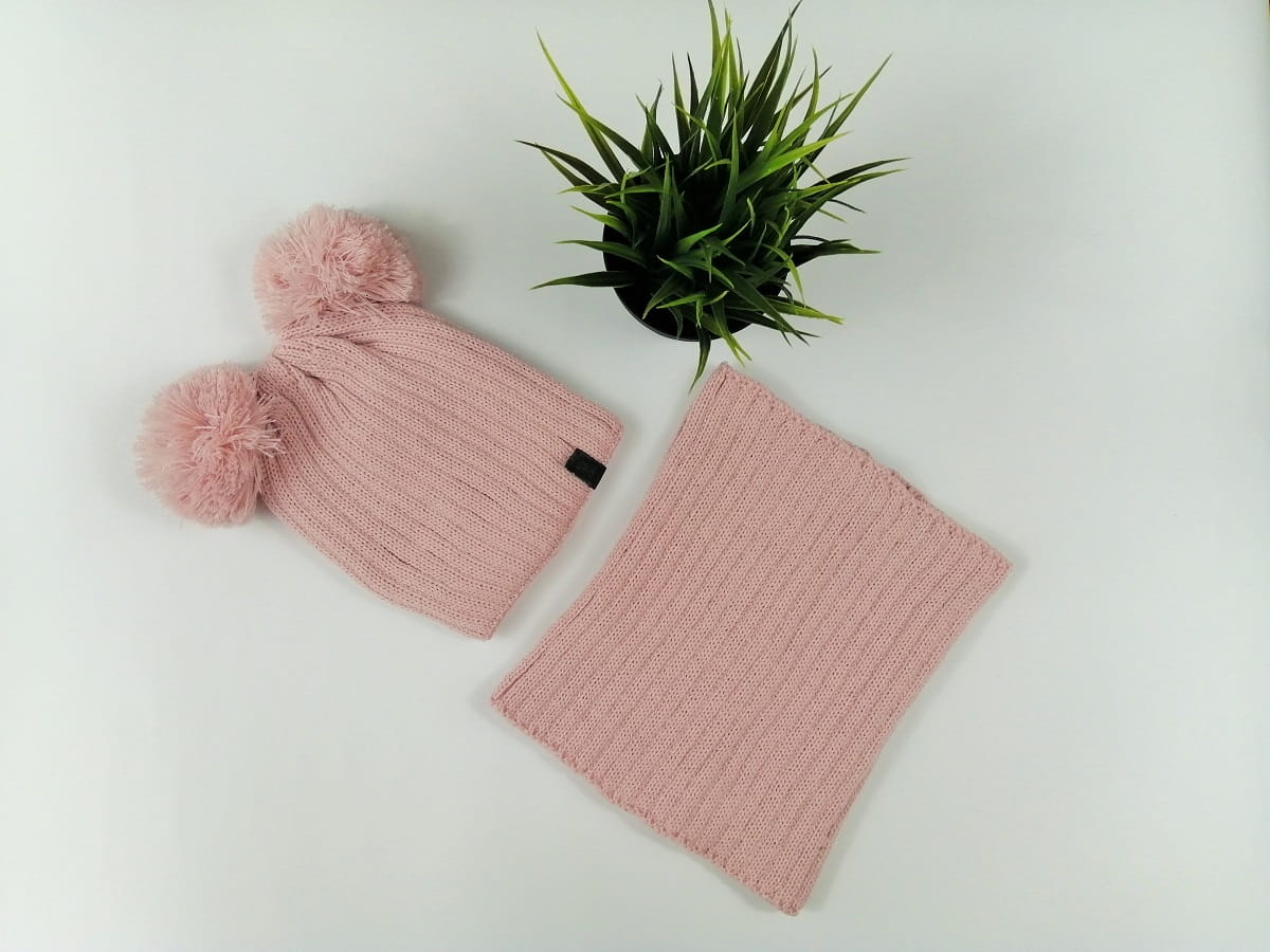 Komplet zimowy czapka z pomponami i komin różowy All For Kids
