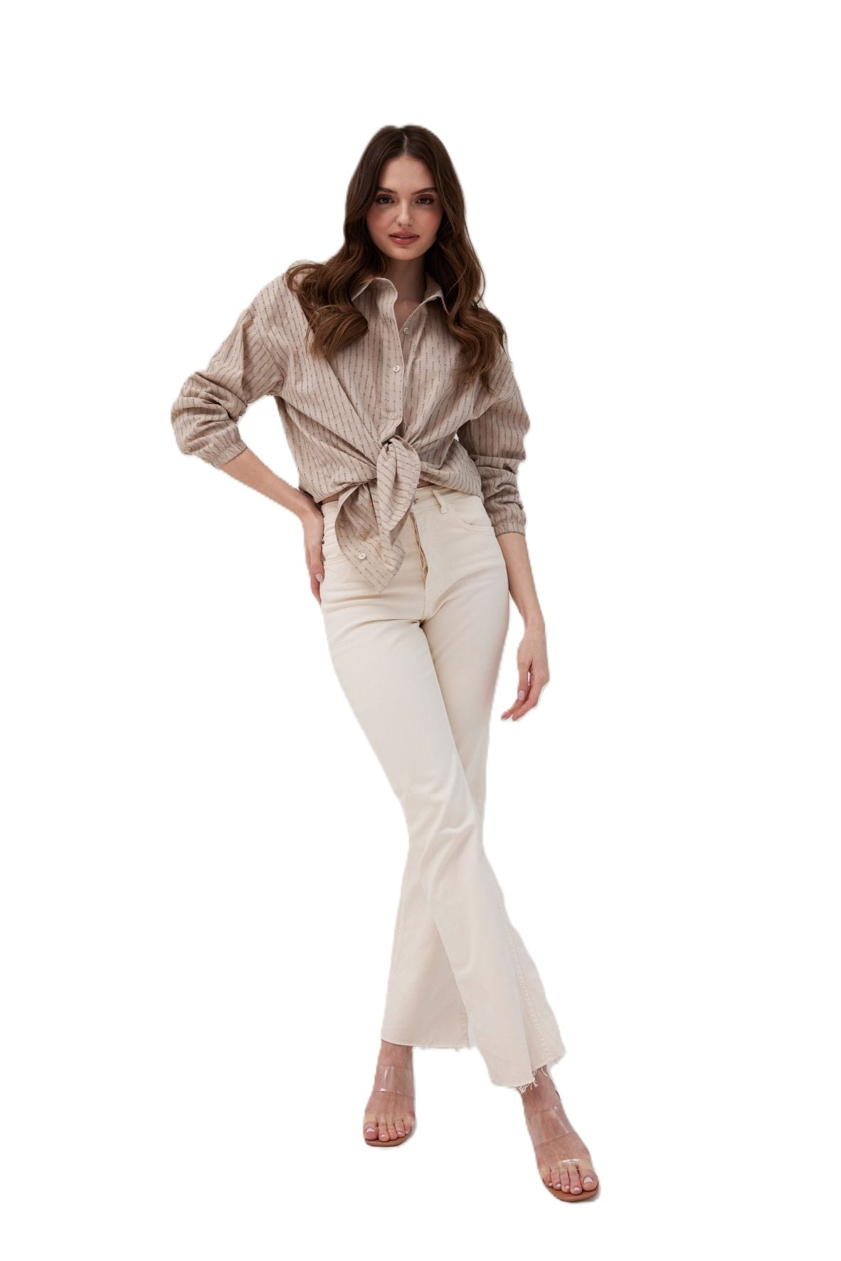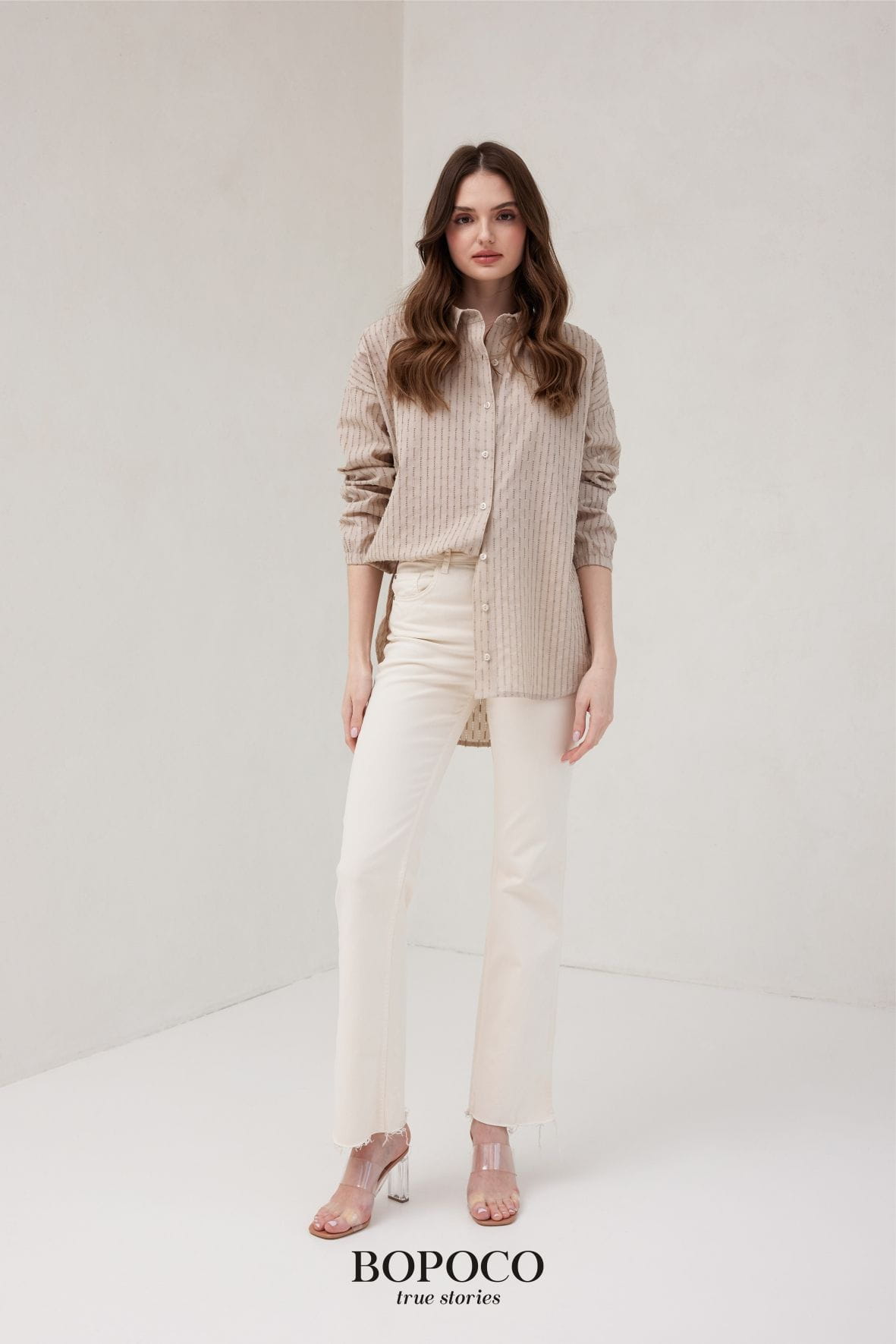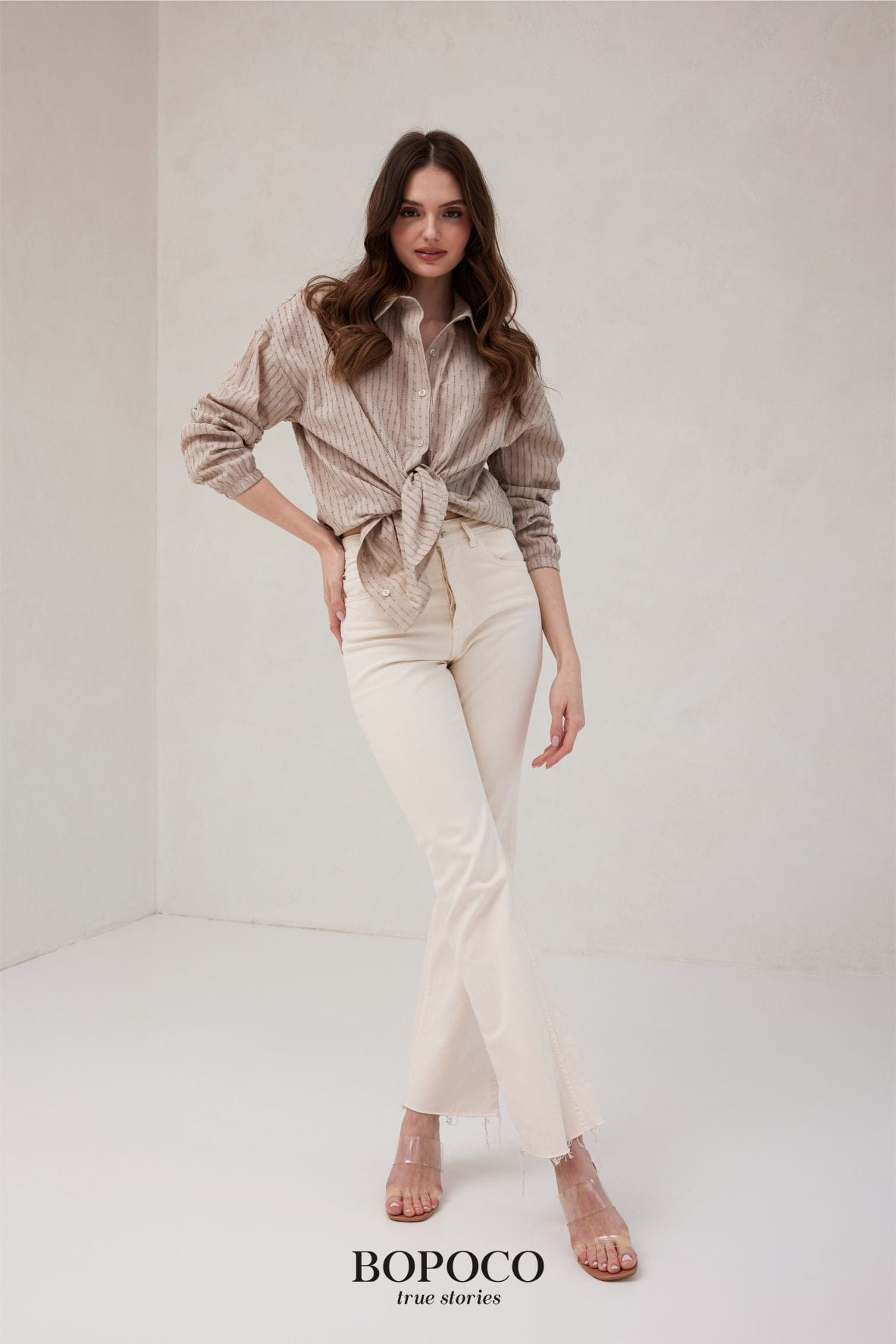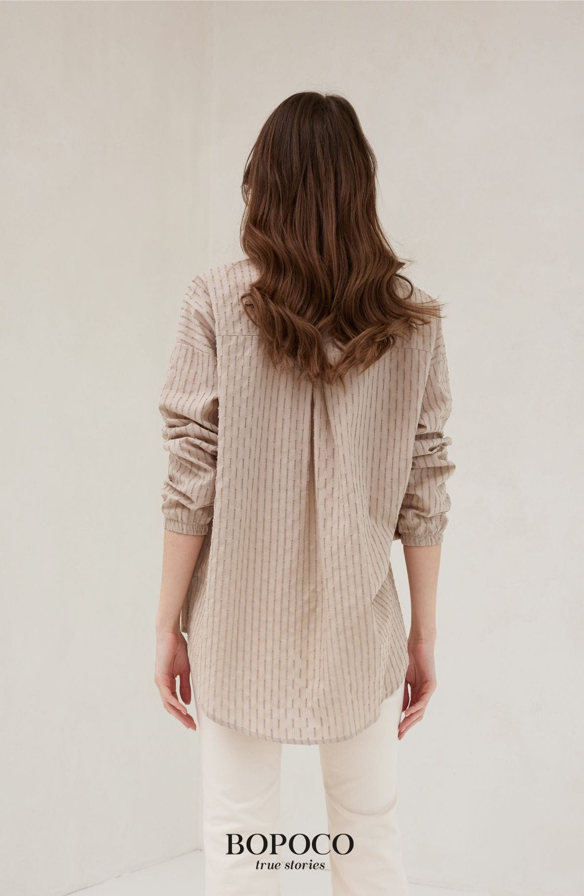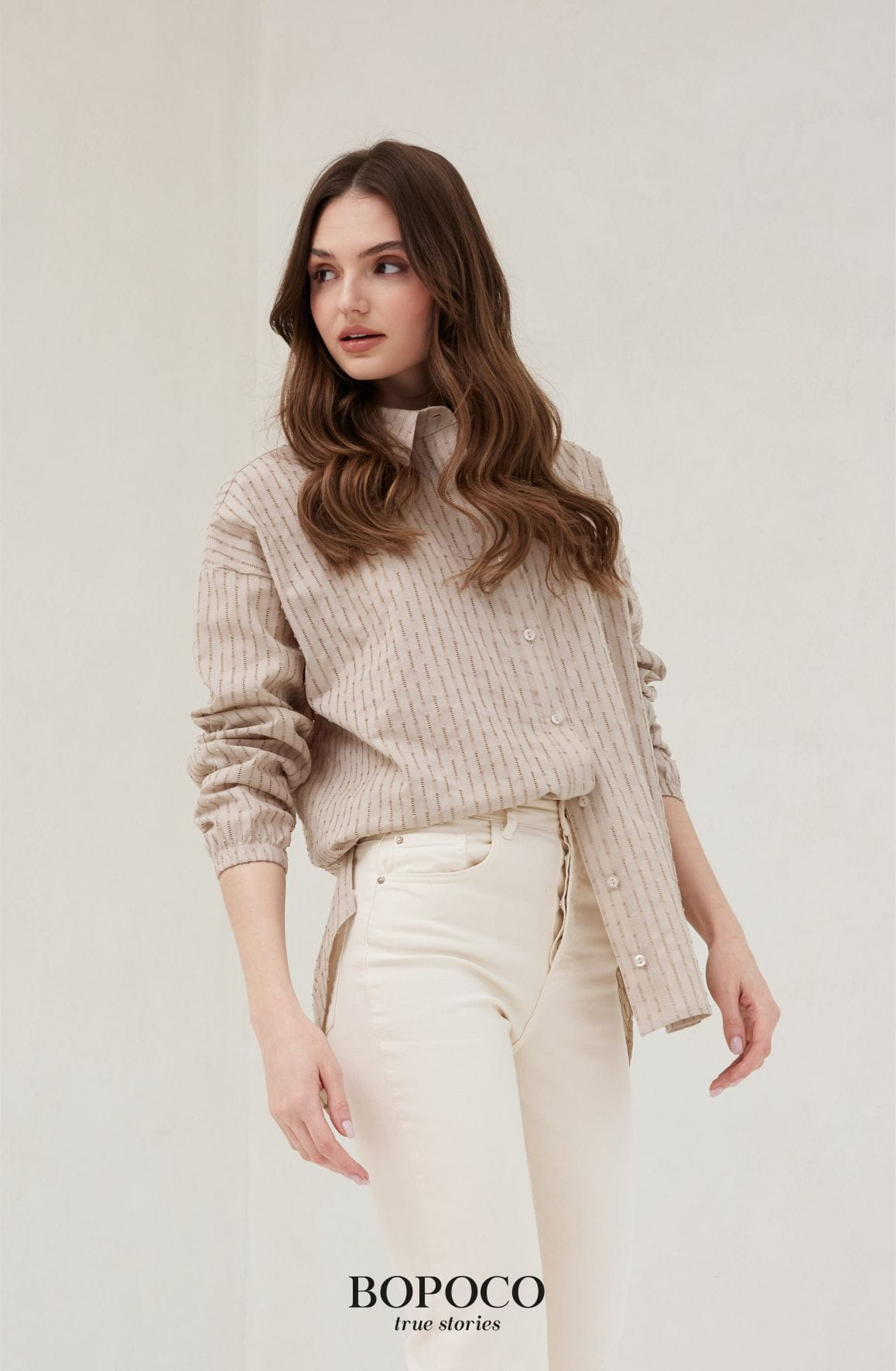 Beżowa koszula ażurowa powstała w Polsce przez markę BOPOCO true stories z przewiewnej i komfortowej w noszeniu bawełny.