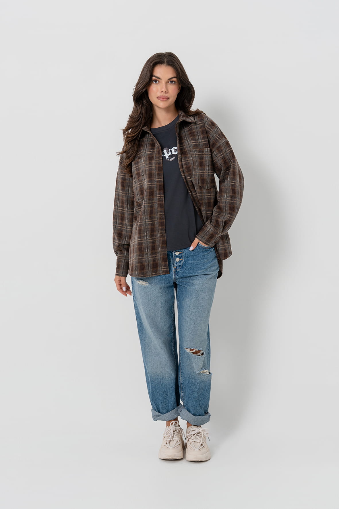 - Jako narzutka - noś rozpiętą koszulę na t-shirt lub top, w połączeniu z legginsami czy szortami.