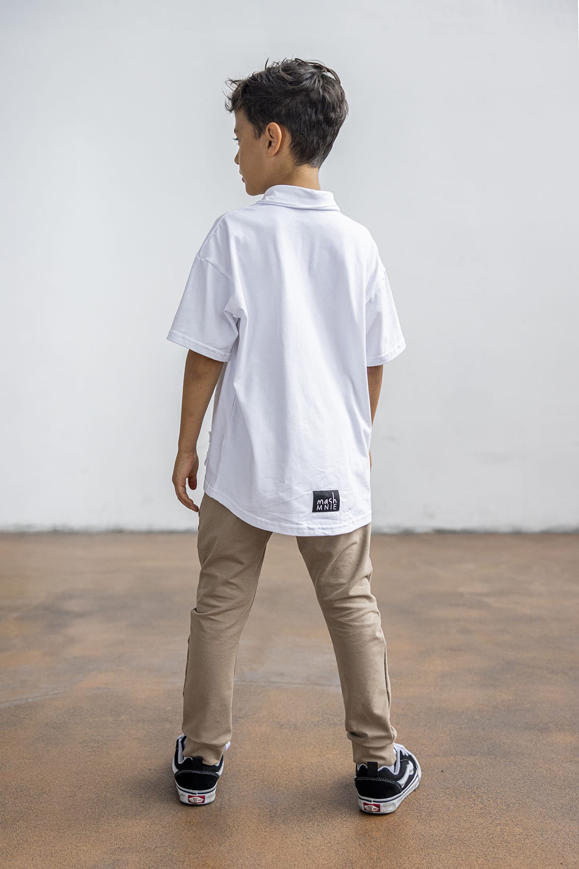 Luźny i ponadczasowy krój sprawia, że biała bluzka polówka świetnie komponuje się z różnorodnymi spodniami, zarówno krótkimi, jak i długimi. To wszechstronny element garderoby, który sprawdzi się w szkole, na spotkaniach z przyjaciółmi czy rodzinnych wyjściach.