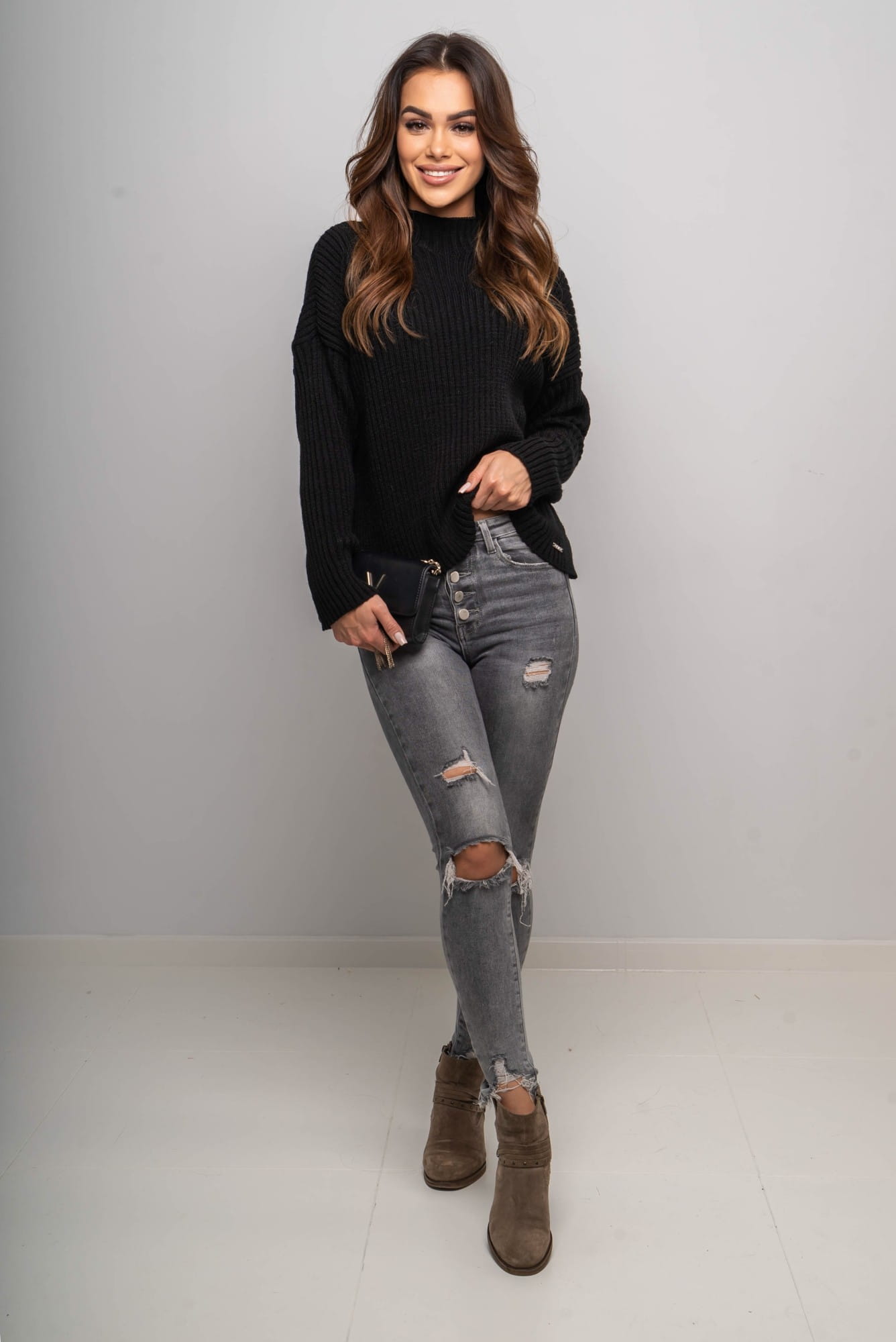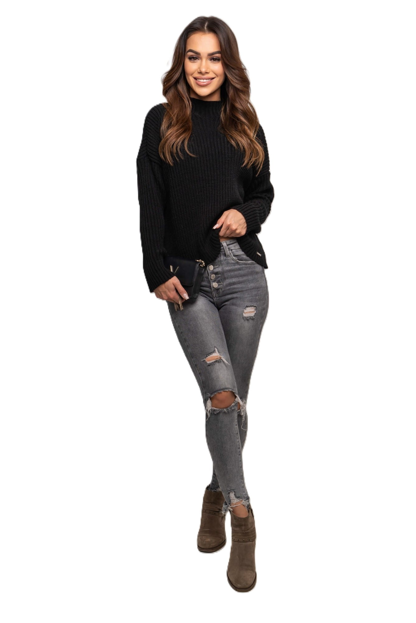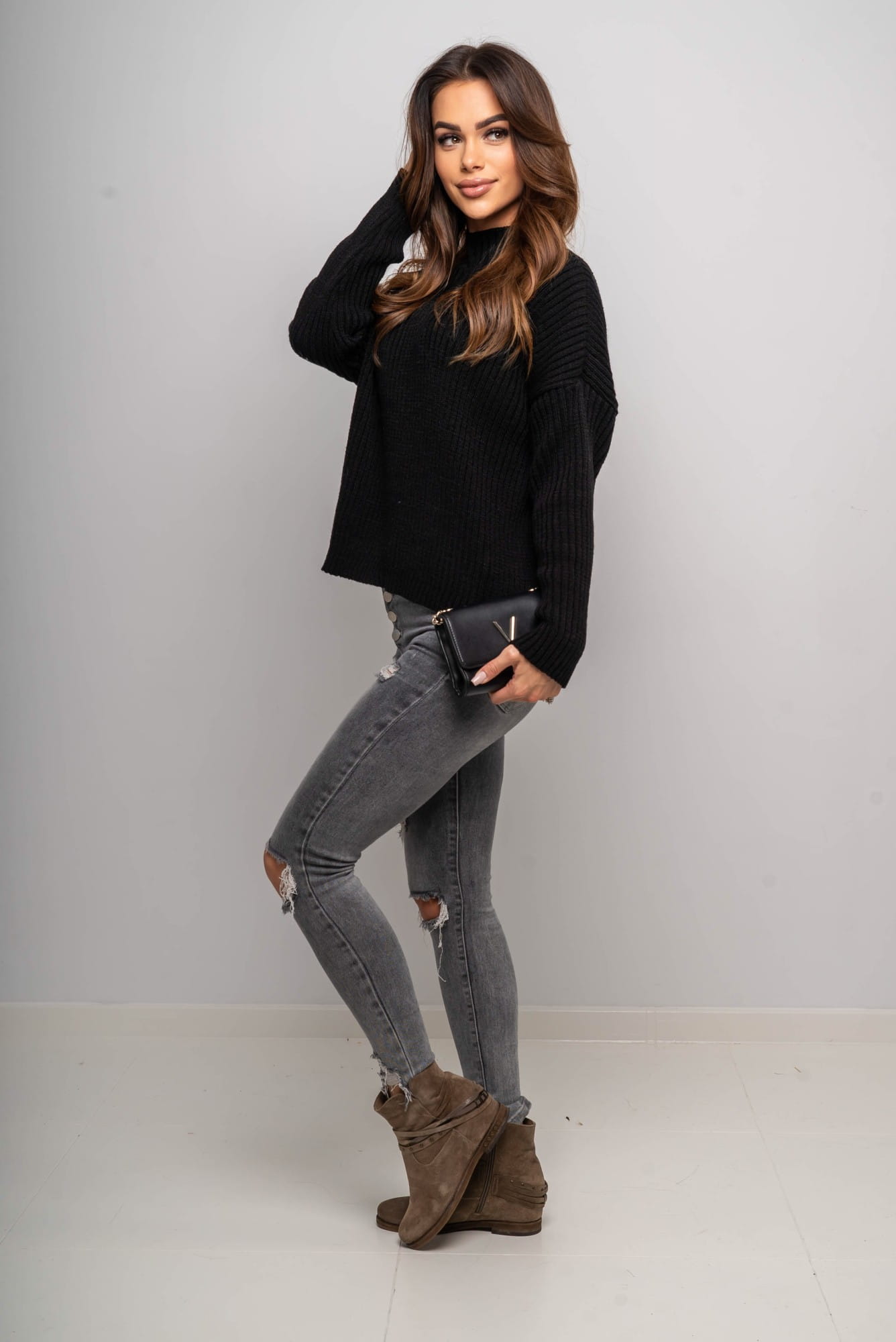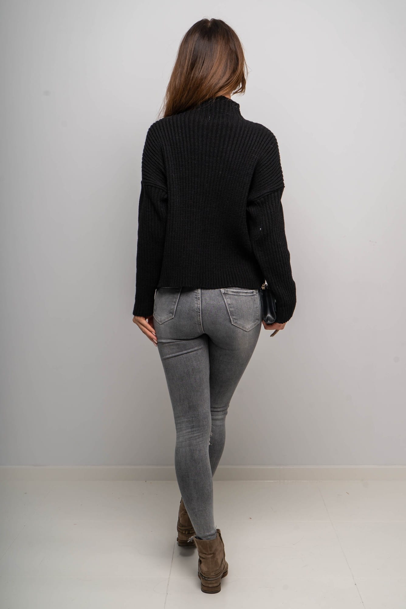 Ten krótki czarny sweter w odcieniu czekolady to świetny wybór zarówno na co dzień, jak i do pracy czy na spotkania ze znajomymi. Dzięki uniwersalnemu krojowi i neutralnemu kolorowi stanie się bazą wielu stylizacji przez cały sezon.