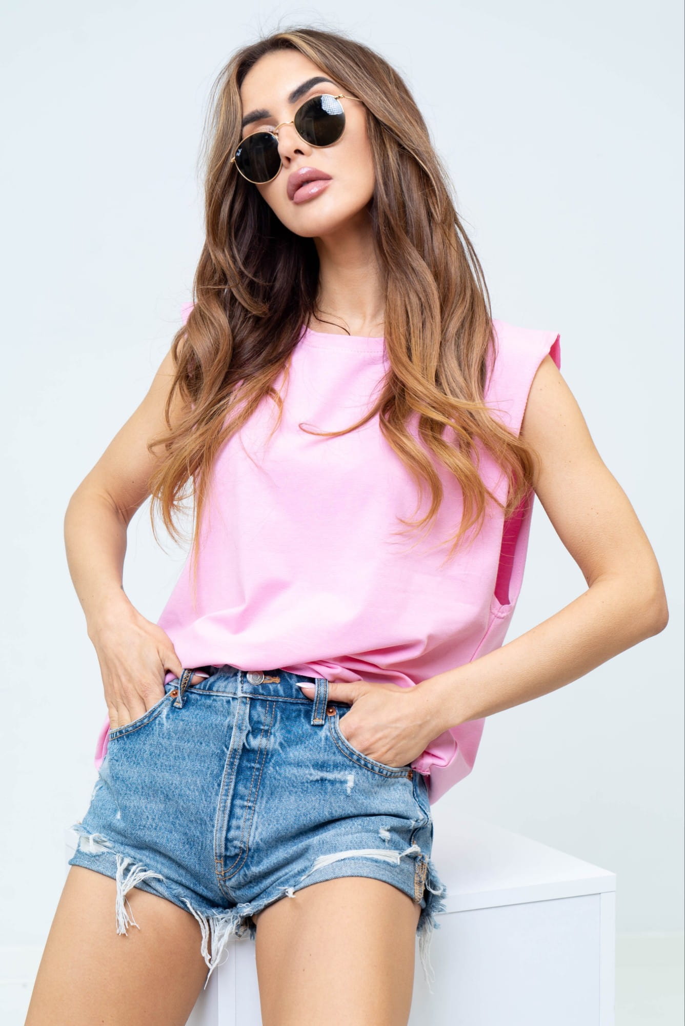 Różowy top powstał w Polsce przez markę Top Moda Collection z gładkiej dzianiny, dzięki czemu jest przewiewny i komfortowy w noszeniu.