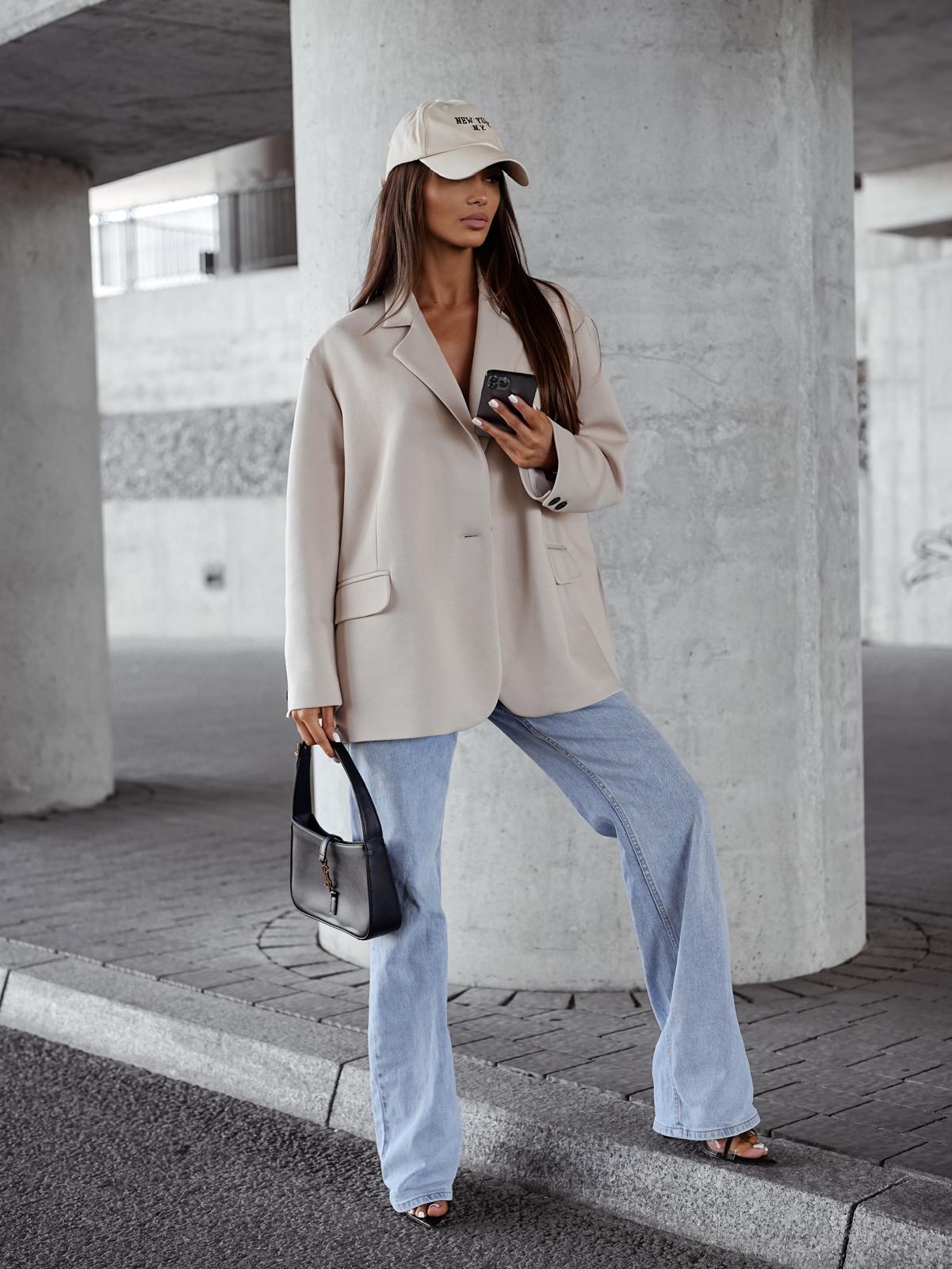 Marynarka damska oversize dresowa beżowa Me Gusta