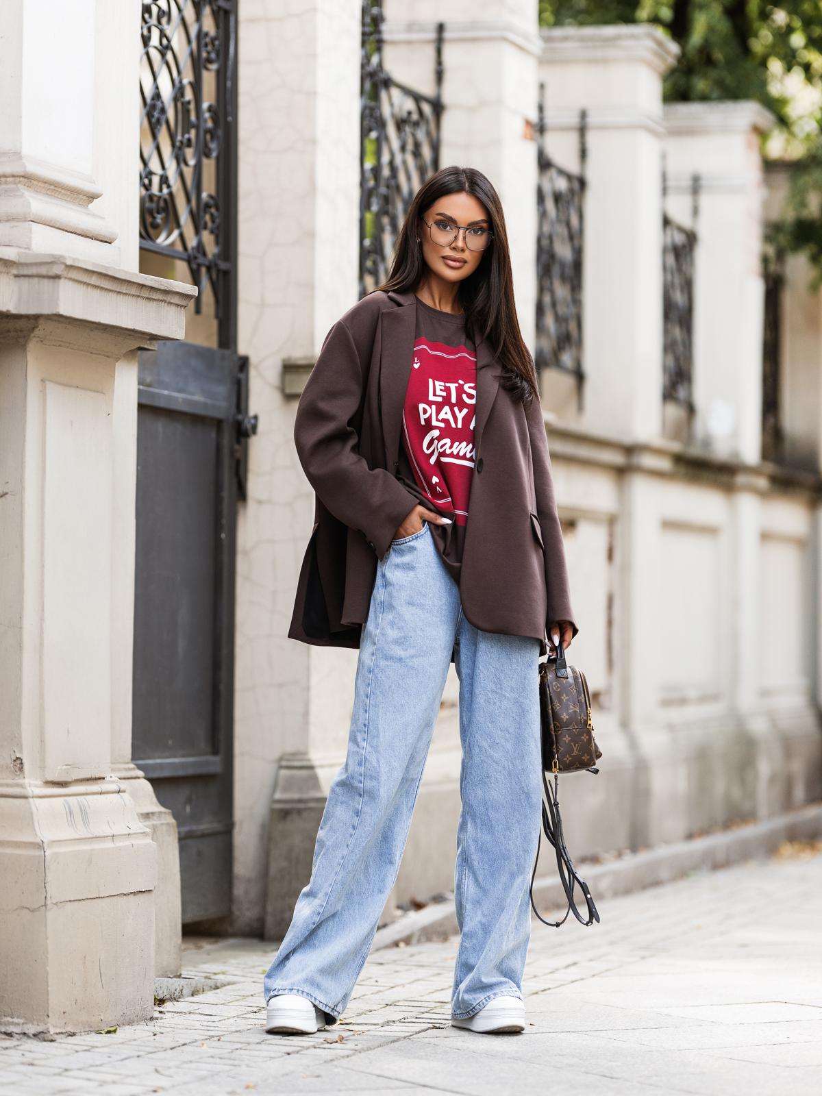 Piękno tkwi w prostocie! Nasza oversizowa marynarka damska połączona z szortami, szerokimi spodniami, leginsami czy jeansami tworzy minimalistyczną stylizację.