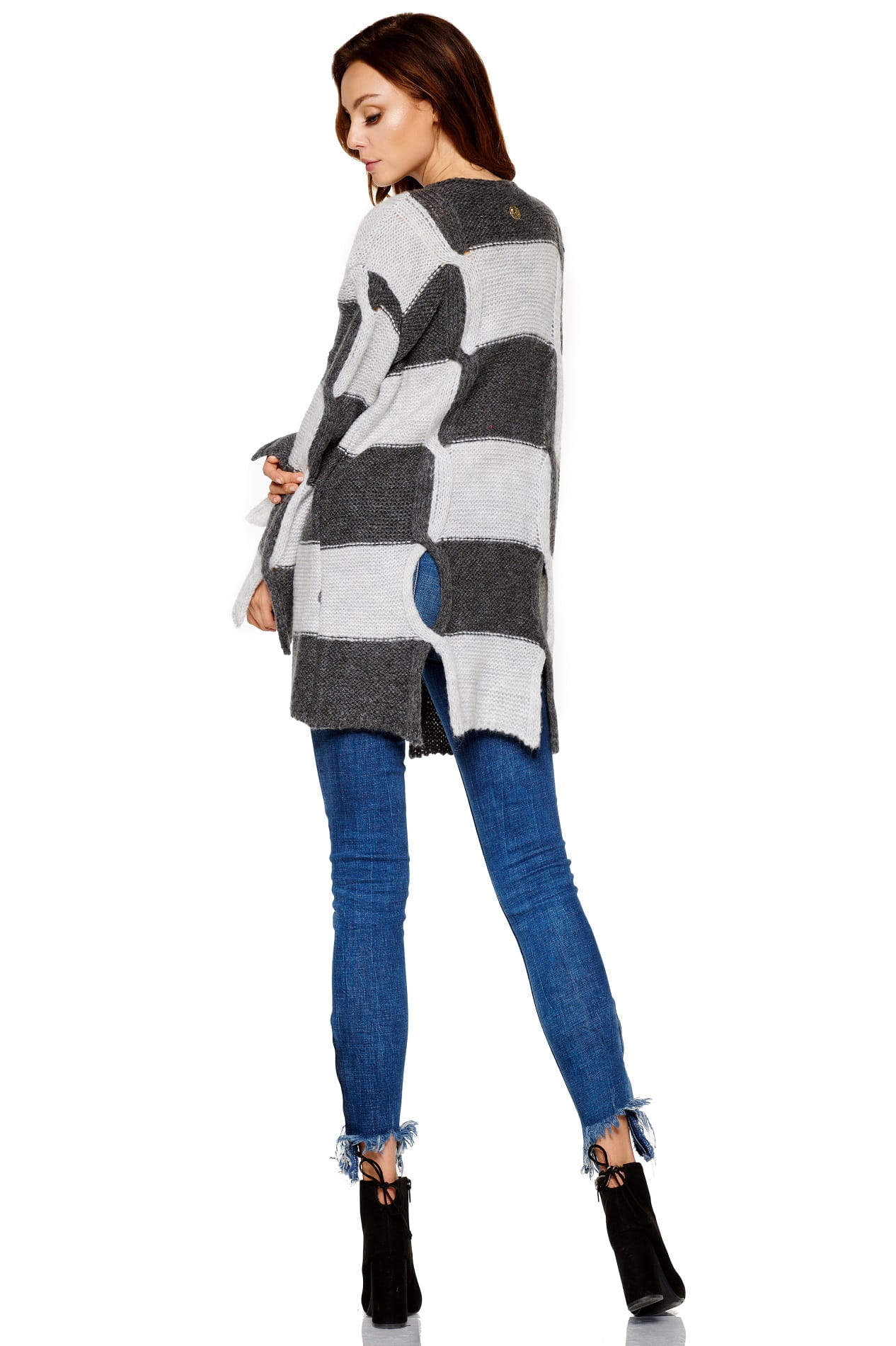 Modny sweter w pasy świetnie sprawdzi się jako narzutka na wiosnę, lato, jesień i do otulenia zimą.