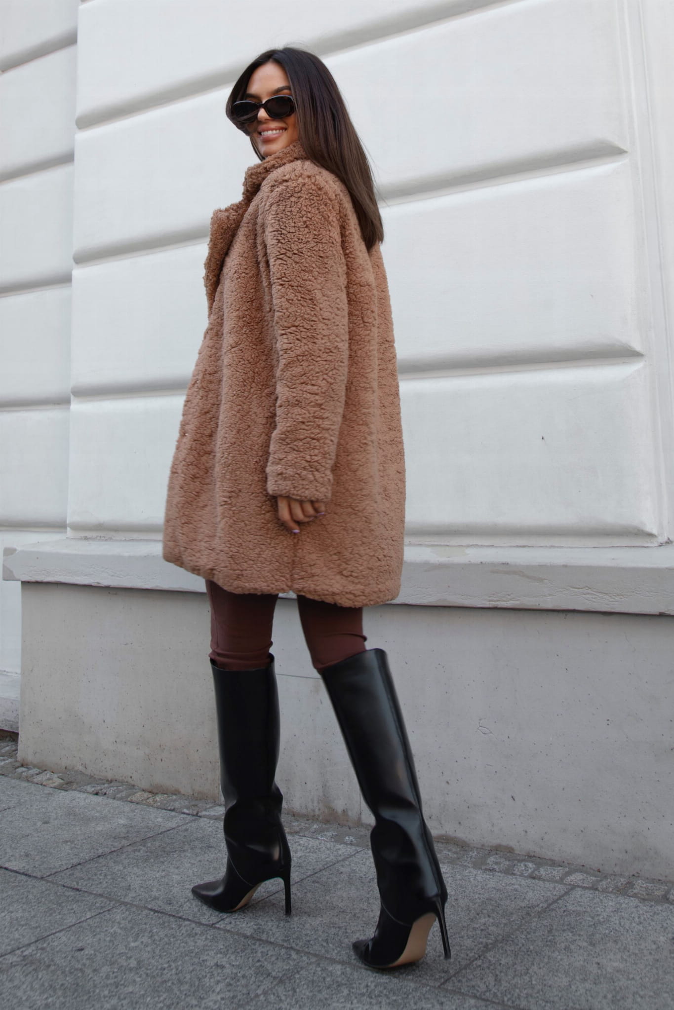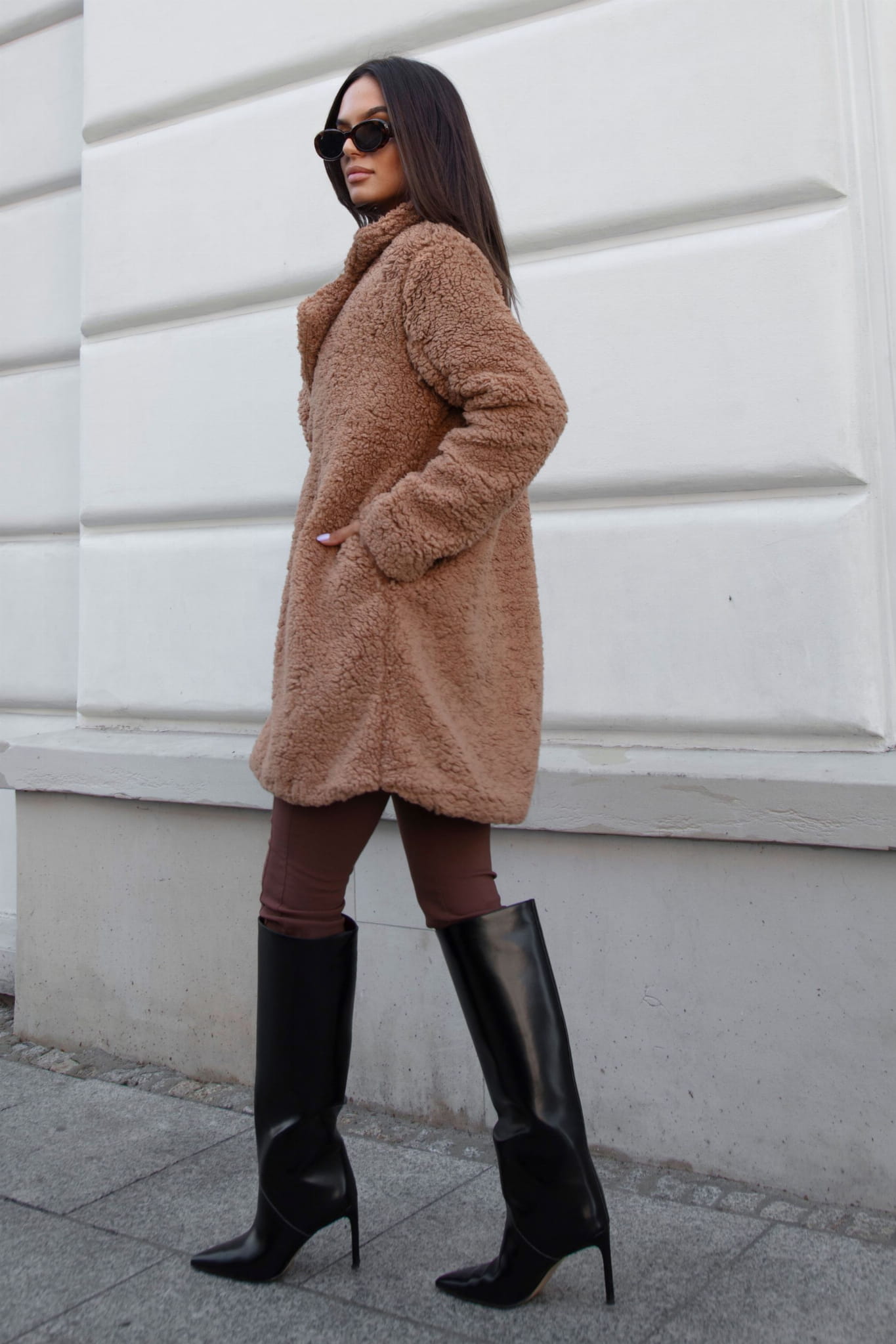 Karmelowy płaszcz Taddy to elegancka propozycja łącząca styl z komfortem. Wykonany z miękkiego i lekkiego materiału miś, zapewnia przyjemne ciepło i wygodę noszenia.