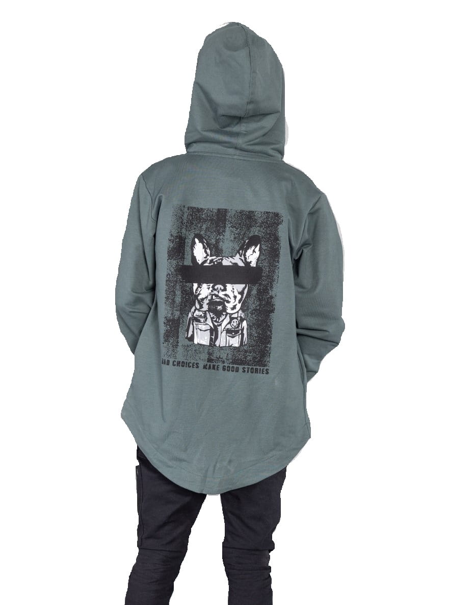 - stylowy napis z boku i na plecach BAD CHOICES MAKE GOOD STORIES