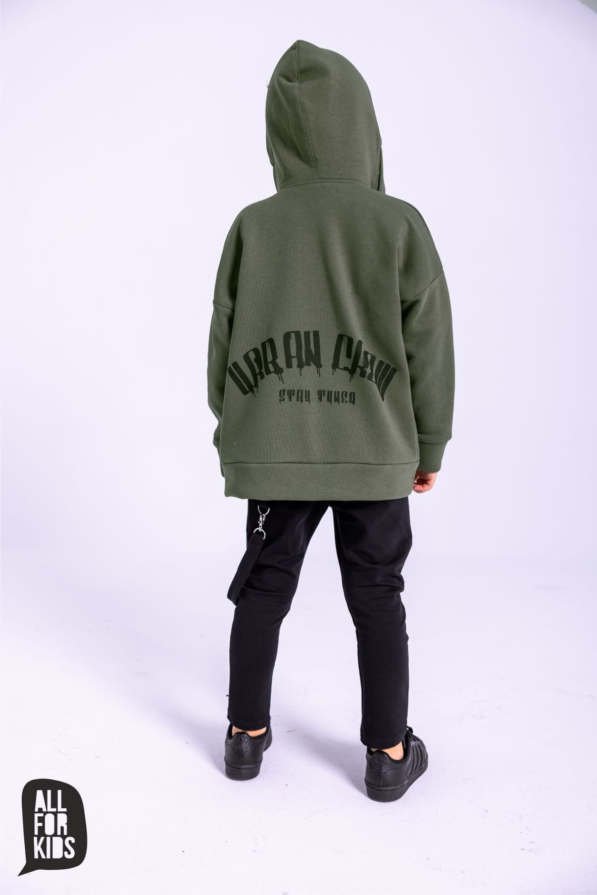Rozpinana bluza z kapturem URBAN CREW powstała w Polsce przez markę All For Kids z komfortowej w noszeniu dzianiny drapanej (meszek od środka), dzięki czemu jest ciepła i miękka w dotyku.