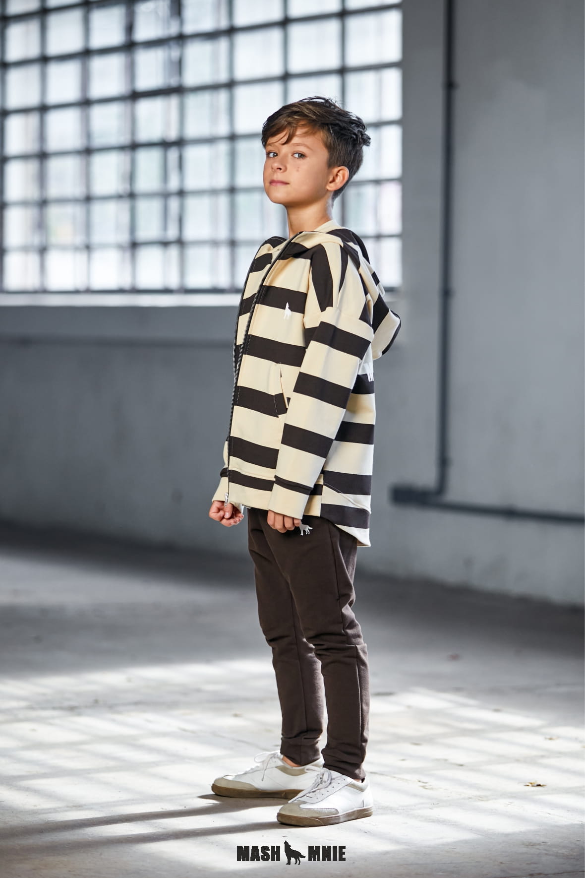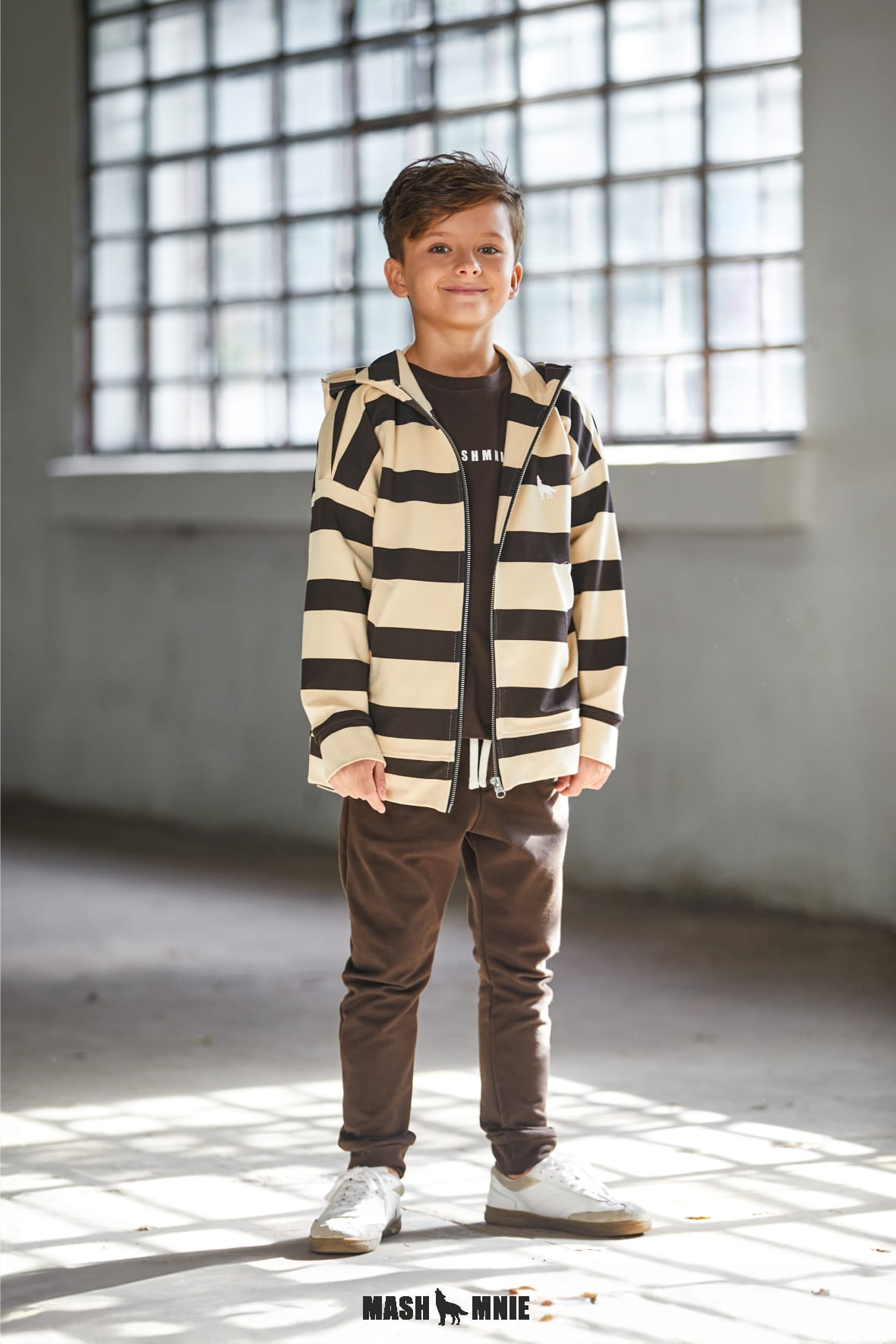 Rozpinana bluza z wilkiem paski brązowa beżowa Mash MNIE