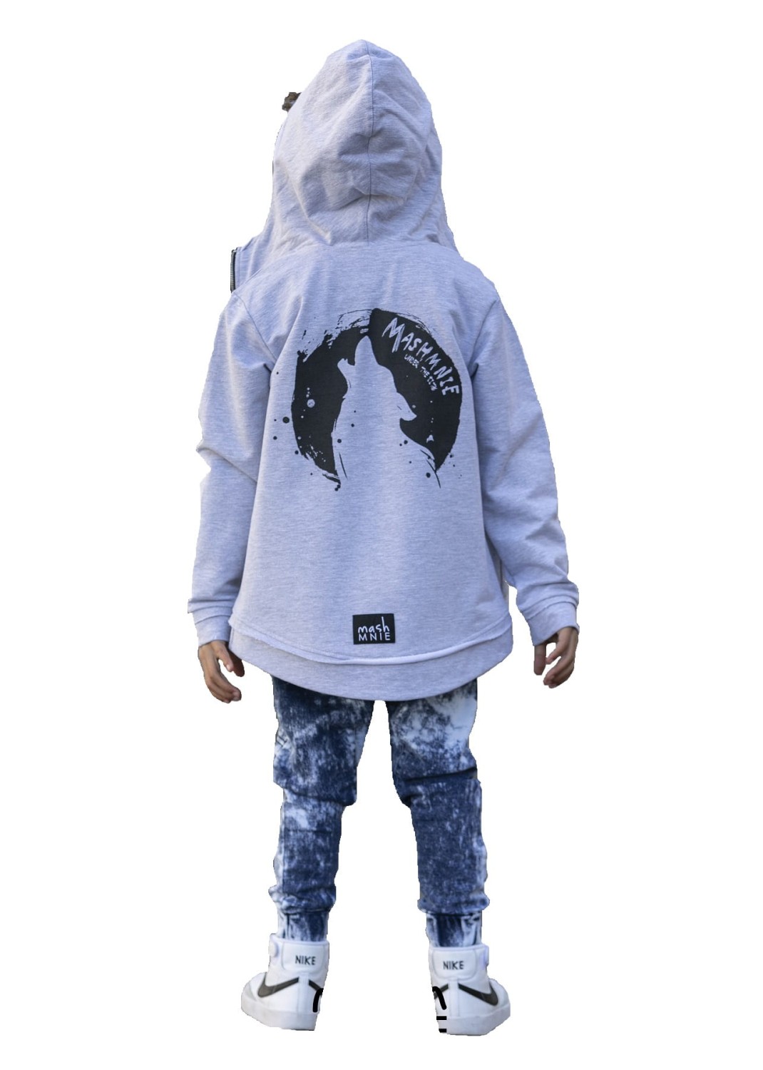Rozpinana bluza z wilkiem z kolekcji UNDER THE CITY od polskiej marki Mash MNIE. Dziecięca bluza z kapturem i zamkiem wykonana z wysokiej jakości, komfortowej w noszeniu dzianiny dresowej.