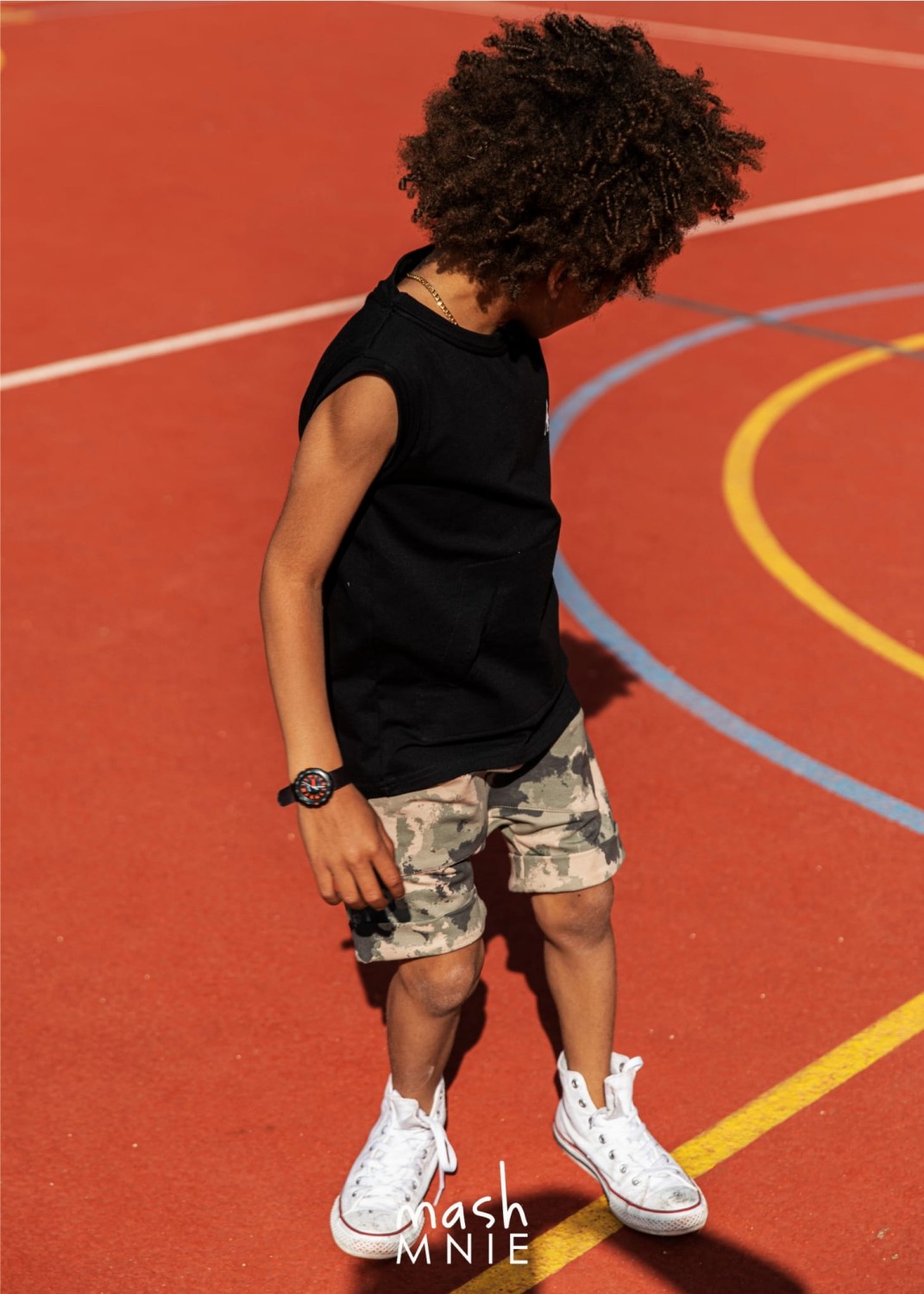 Zjawiskowe spodenki moro od polskiej marki Mash MNIE z kolekcji CAMOUFLAGE. Modne spodenki z kangurką wykonane z wysokiej jakości dzianiny dresowej, dzięki czemu są komfortowe w noszeniu.