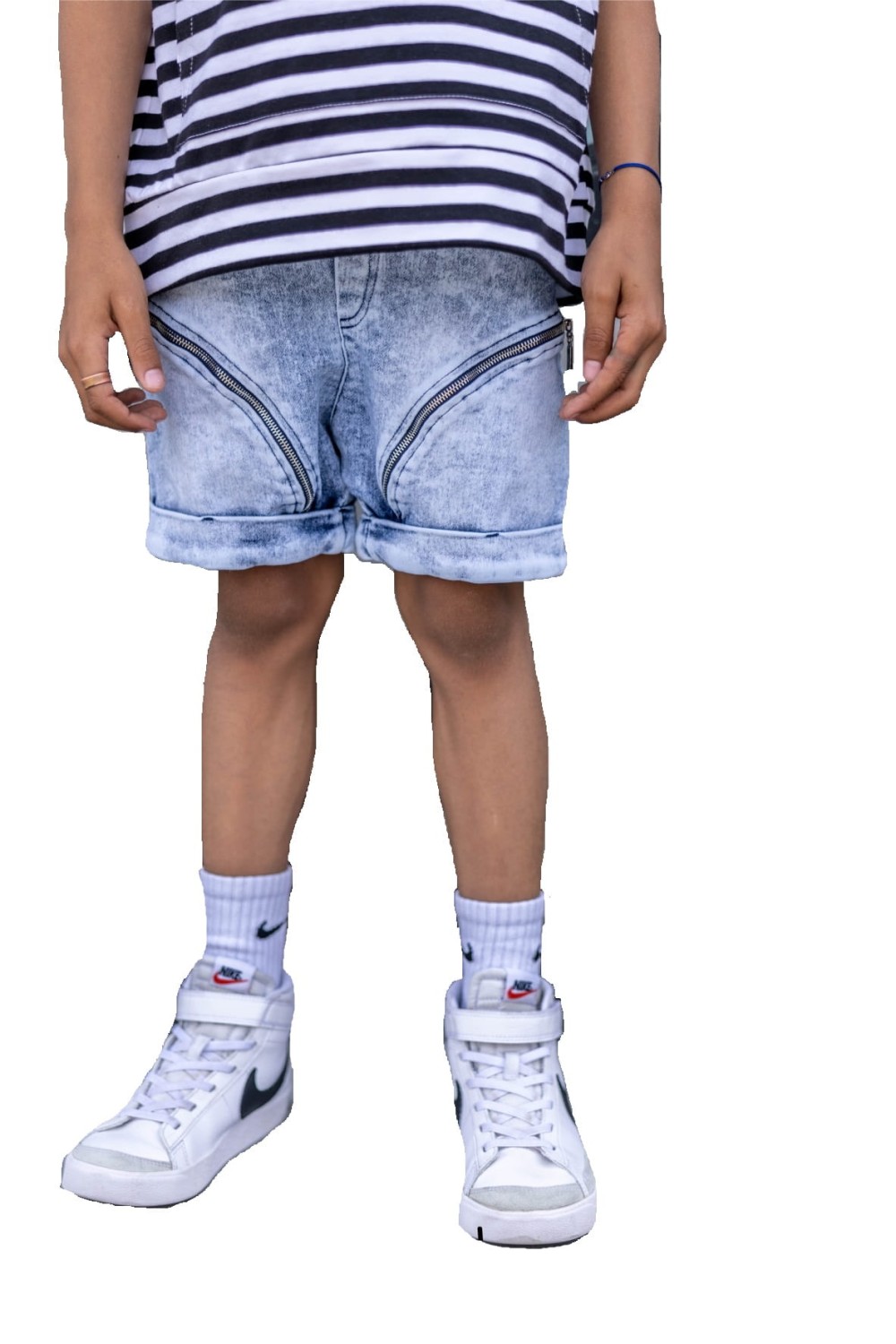 Zjawiskowe spodenki jeansowe z ekspresami od polskiej marki Mash MNIE z kolekcji WOLF SOUL. Modne spodenki dziecięce uszyte z miękkiej dzianiny jeansowej z dodatkiem elastanu, dzięki czemu są komfortowe w noszeniu.
