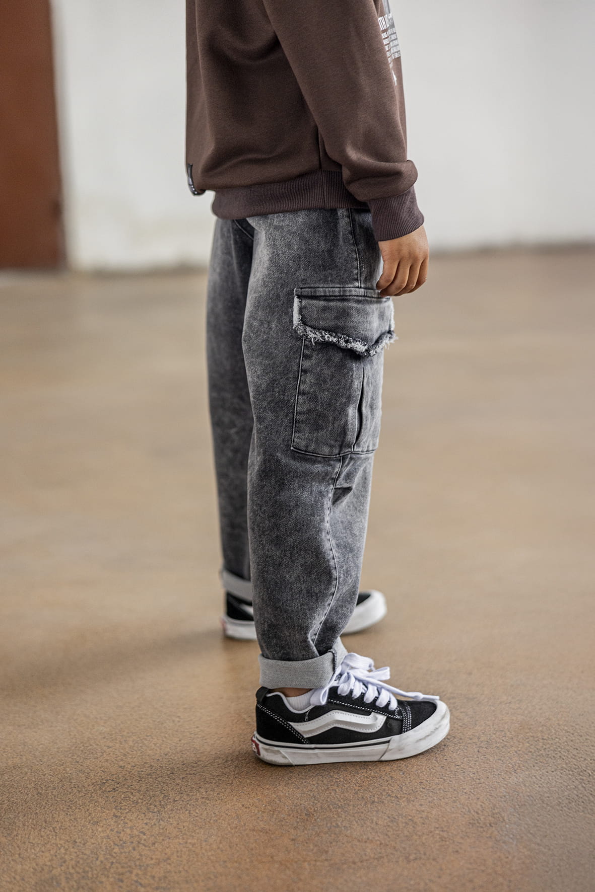 Grafitowe spodnie jeansowe typu bojówki od marki Mash MNIE to doskonały wybór dla małych poszukiwaczy przygód. Zaprojektowane zarówno dla dziewczynki jak i chłopca i wykonane w Polsce z wysokiej jakości miękkiej dzianiny, która imituje modny wygląd jeansu - te spodnie łączą w sobie styl i wygodę.