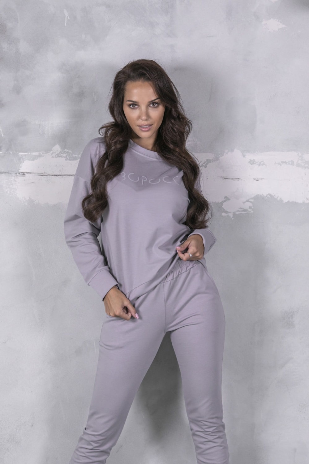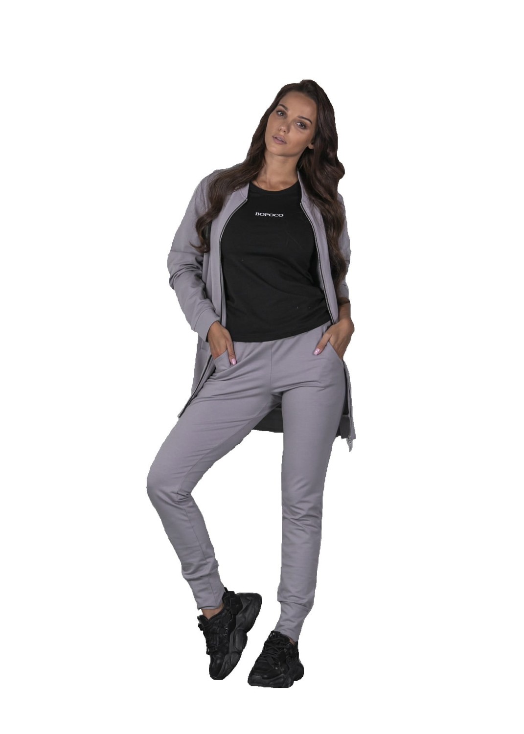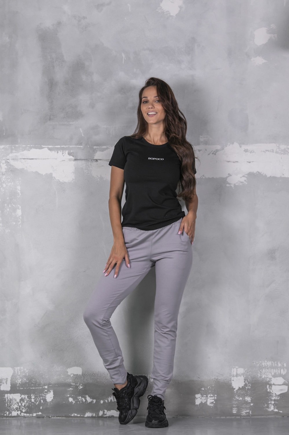 Szare spodnie dresowe od polskiej marki BOPOCO true stories. Modne spodnie damskie wykonane z wysokiej jakości komfortowej w noszeniu dzianiny dresowej.