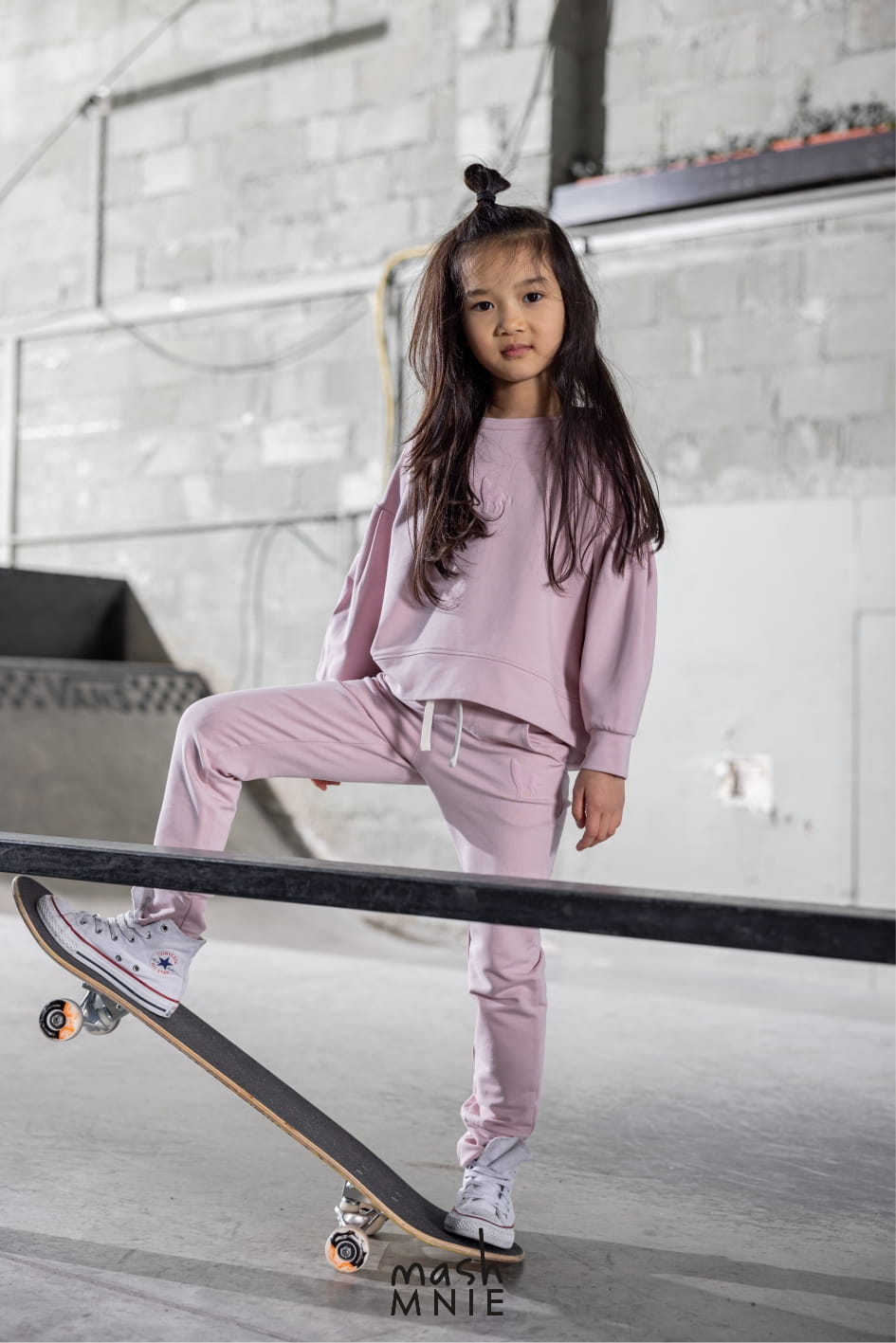 Różowe spodnie wolf od polskiej marki Mash MNIE z kolekcji WOLF SOUL. Modne spodnie dziecięce wykonane z wysokiej jakości, komfortowej w noszeniu dzianiny dresowej.