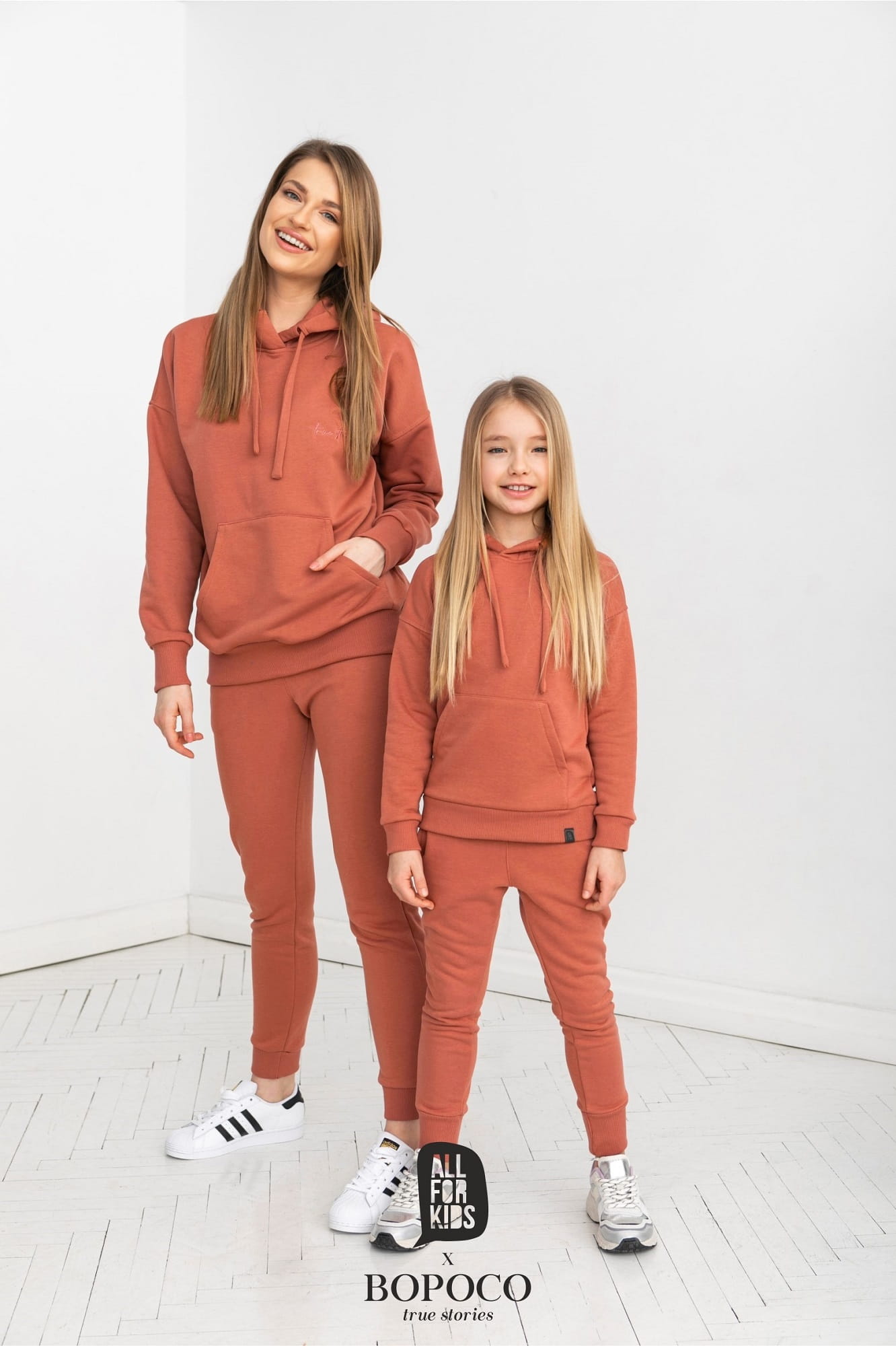 Koralowe spodnie dresowe od polskiej marki All For Kids z kolekcji mama i córka. Modne spodnie dla dziewczynki wykonane w Polsce z wysokiej jakości, komfortowej w noszeniu dzianiny dresowej (grubsza pętela od spodu).