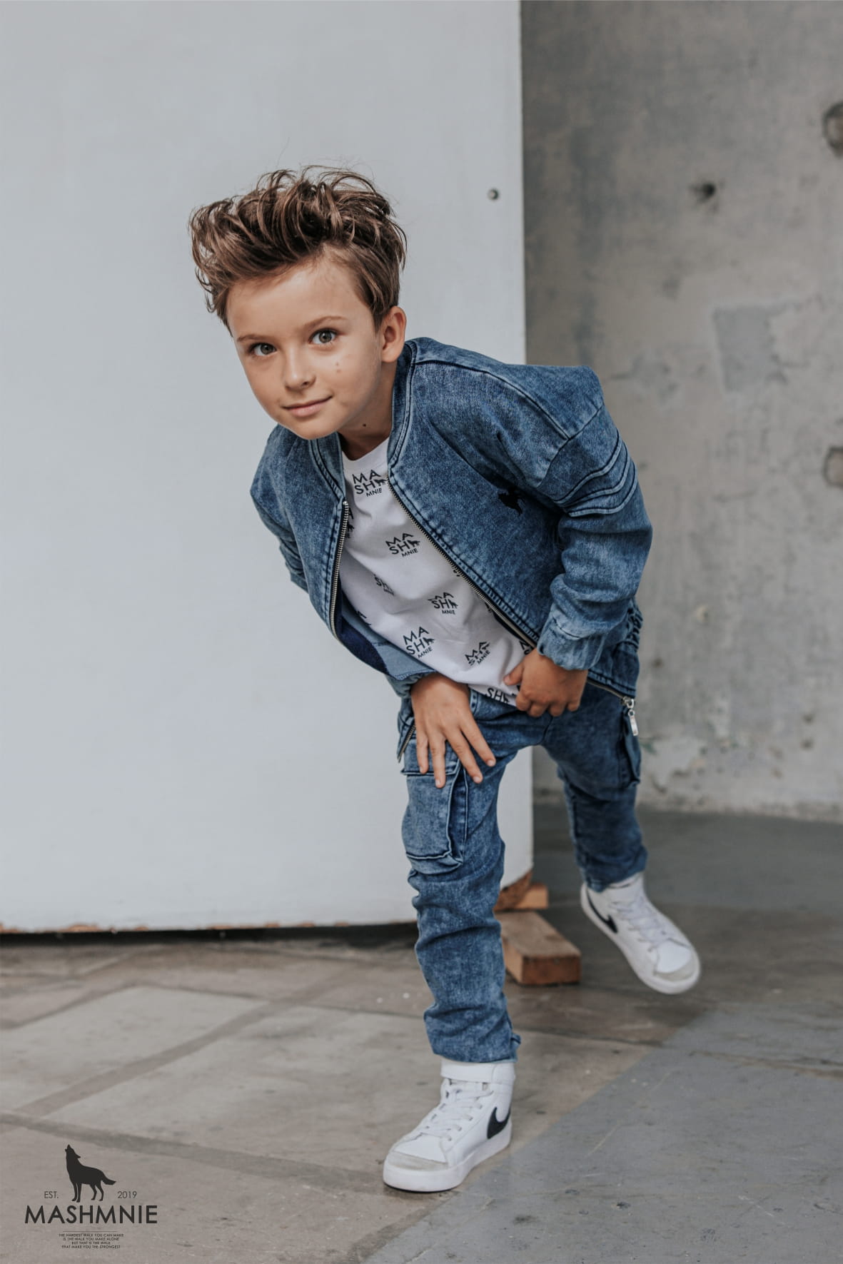Spodnie jeansowe bojówki niebieskie Mashmnie