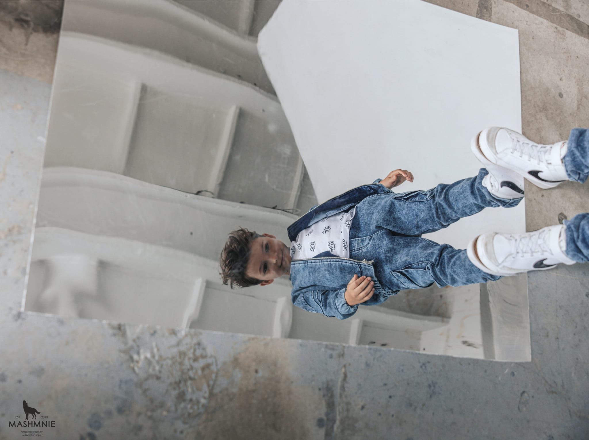 Zjawiskowe spodnie jeansowe z kolekcji WOLF NATURE powstały w Polsce przez markę Mash MNIE z dzianiny dresowej o wyglądzie modnego jeansu, dzięki czemu są miękkie i komfortowe w noszeniu.