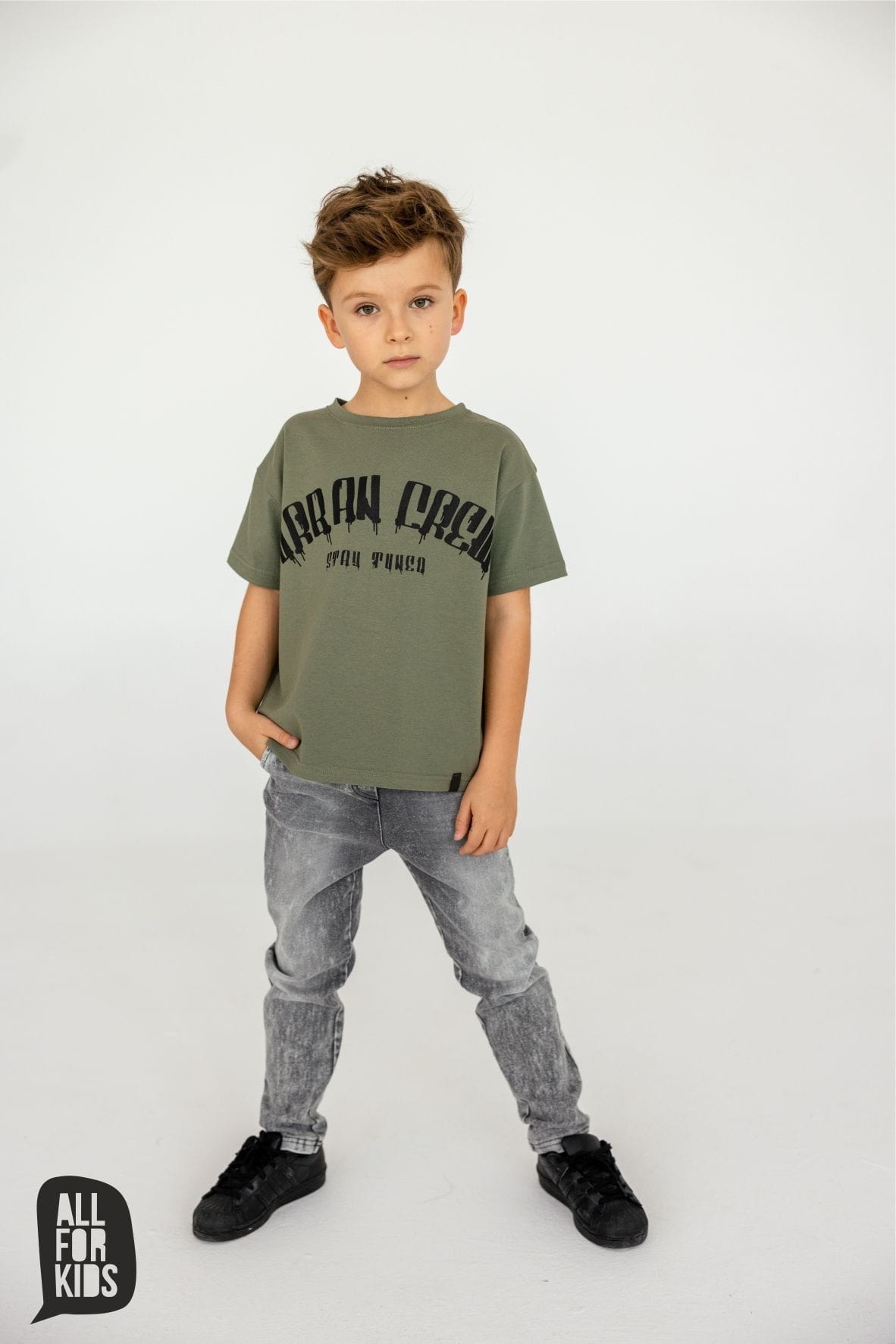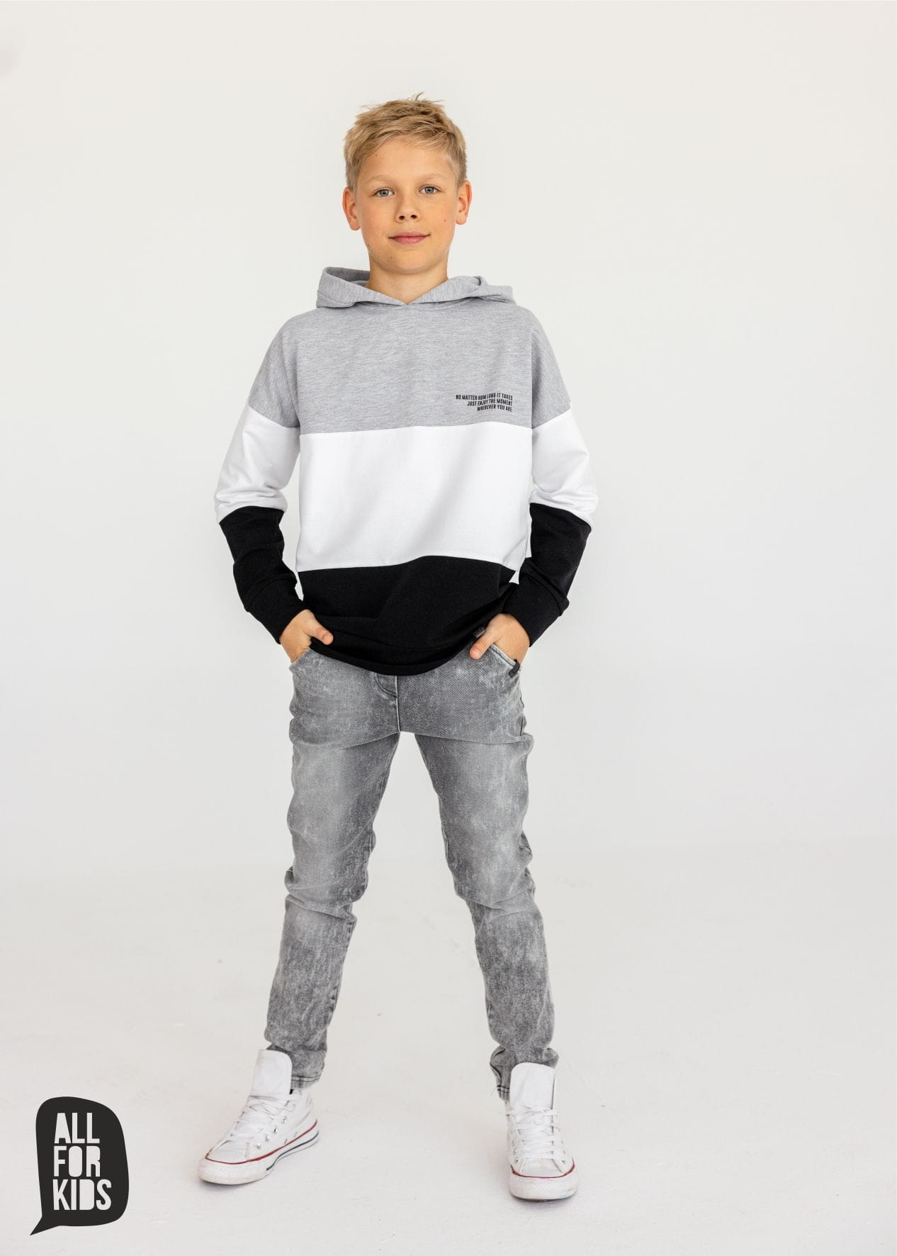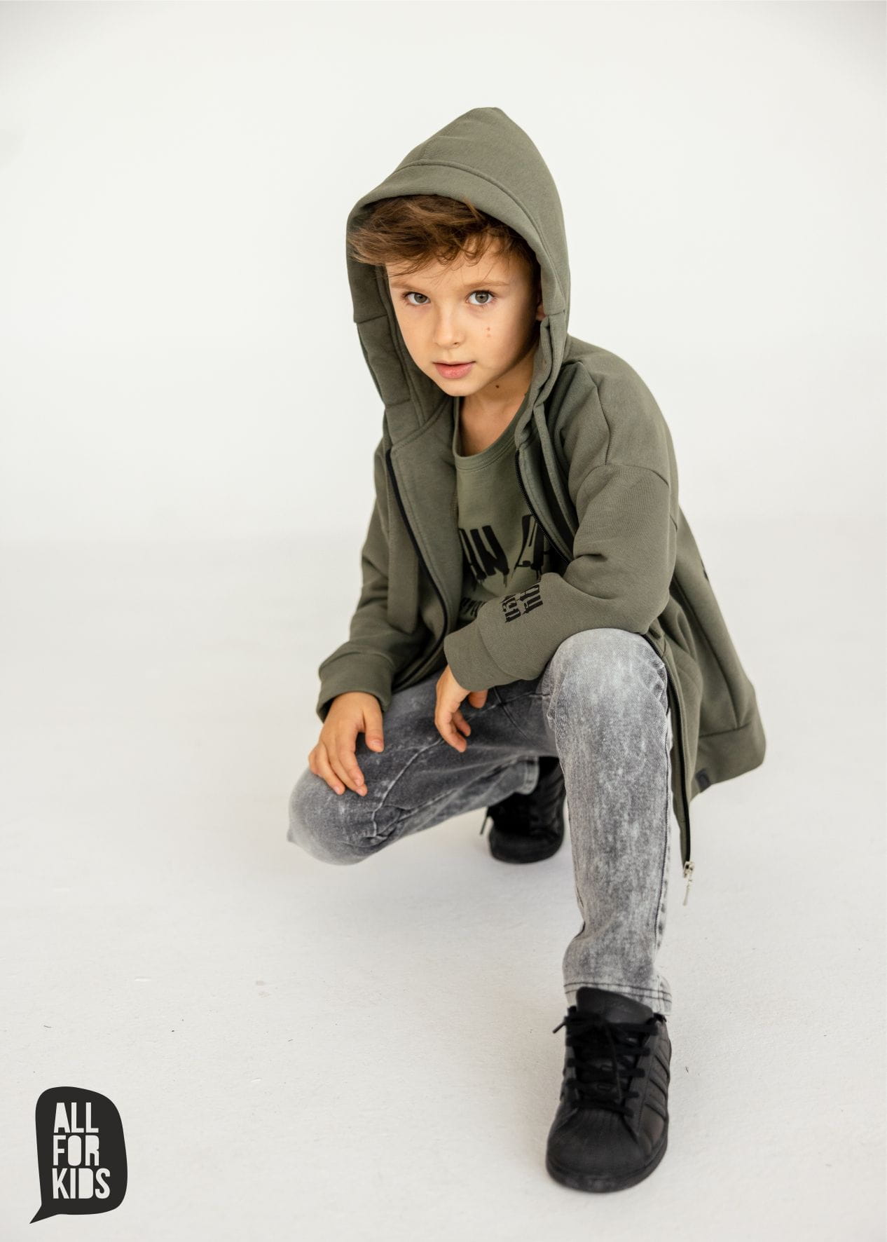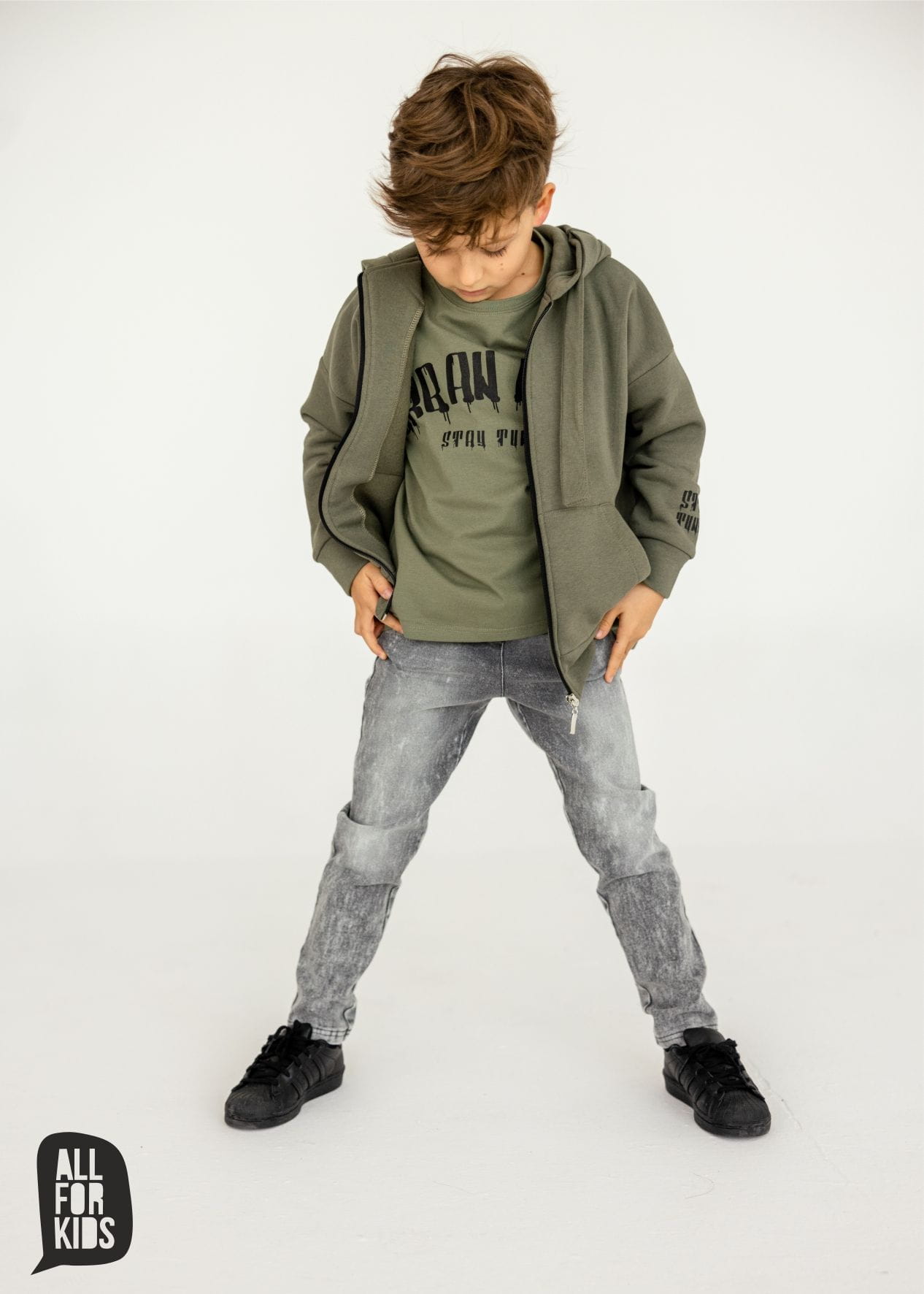 Szare spodnie jeansowe powstały w Polsce przez markę All For Kids z komfortowej w noszeniu elastycznej tkaniny jeansowej.