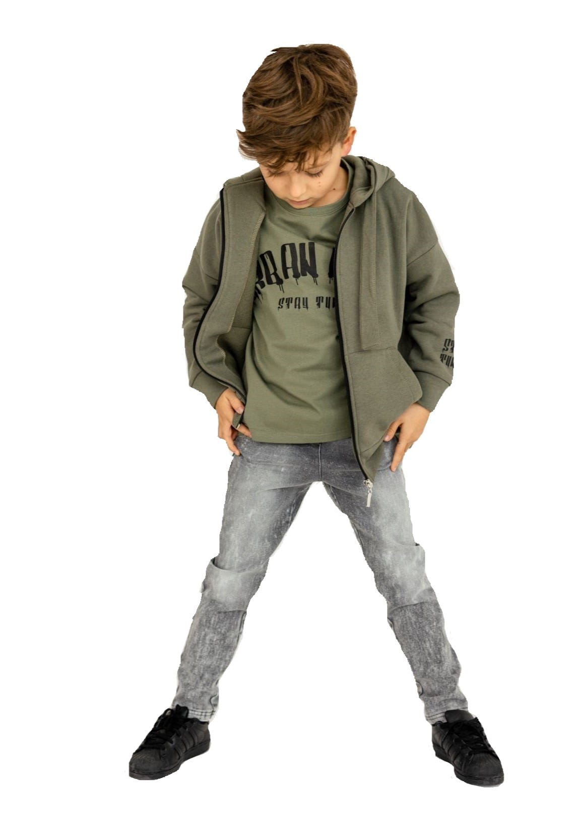 - T-shirt oraz bluza khaki użyte w stylizacji dostępne w pozostałych ofertach do wyczerpania zapasów.