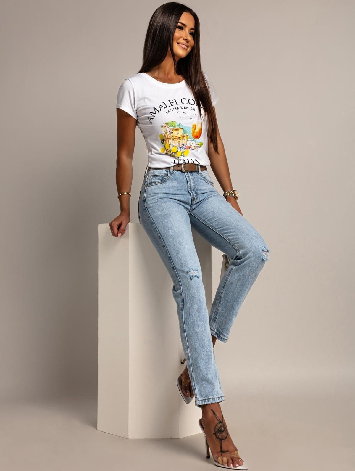 - Długość przed kostkę sprawia, że są wygodne i praktyczne, idealne do noszenia na co dzień. Można je łatwo zestawić zarówno z butami sportowymi, jak i obuwiem na obcasach. Świetnie prezentują się również z podwiniętą nogawką.