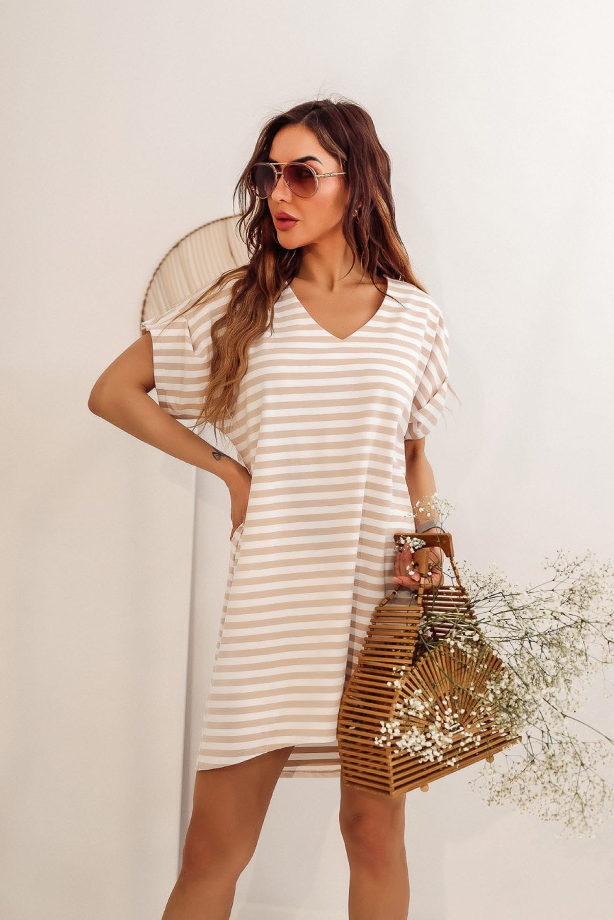 Biała sukienka w beżowe paski będzie doskonałym wyborem na wiele różnych okazji. Zacznij dobrze wyglądać i poczuj się wyjątkowo w naszej bawełnianej sukience damskiej!