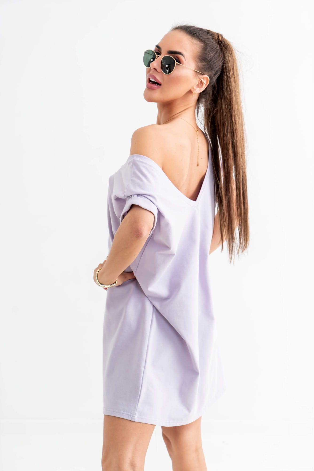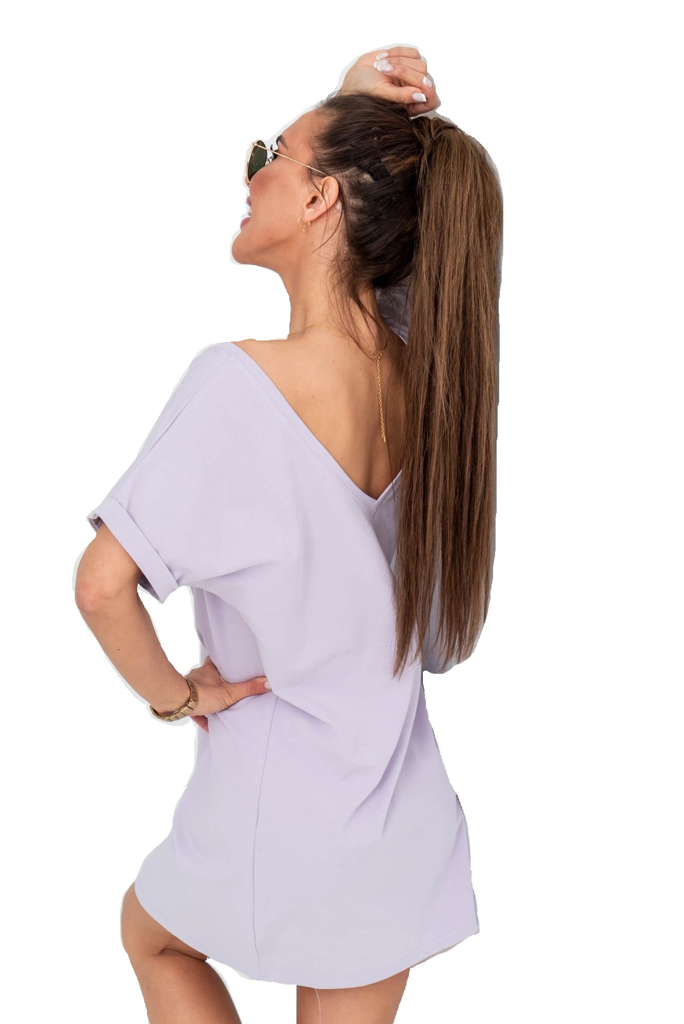 Sukienka V neck przód tył lila TMC Moda
