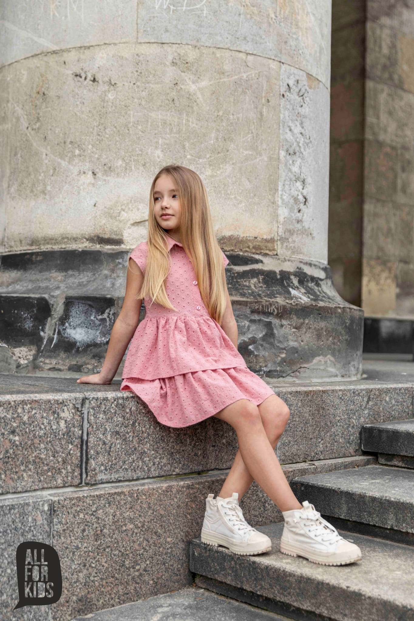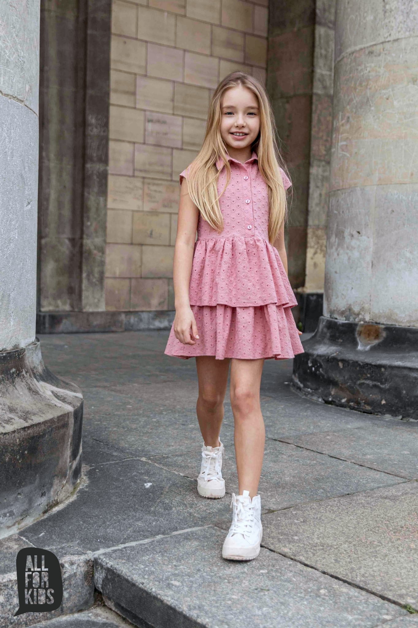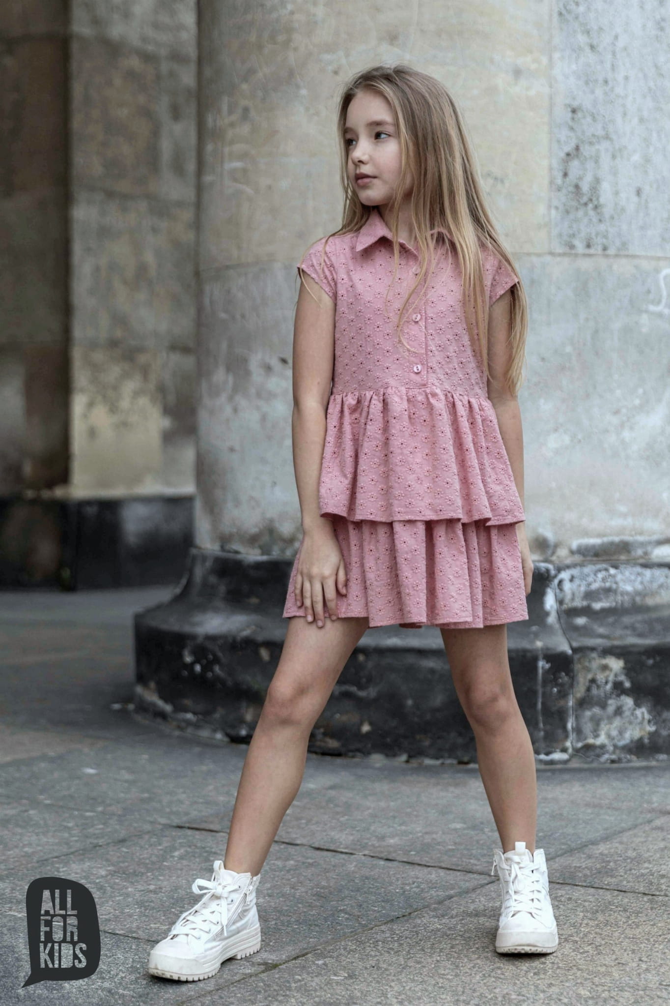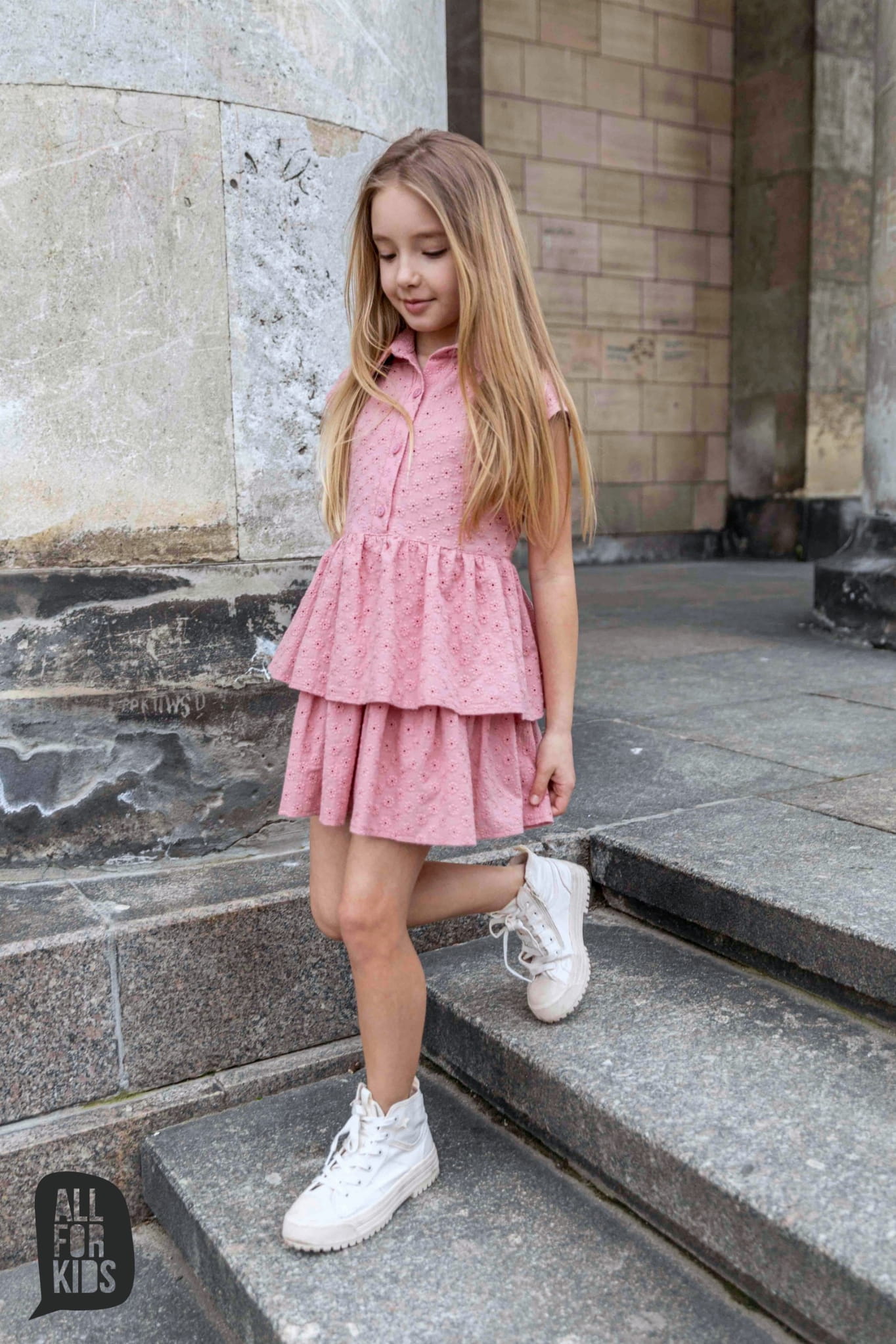 Sukienka ażurowa z falbankami różowa All For Kids