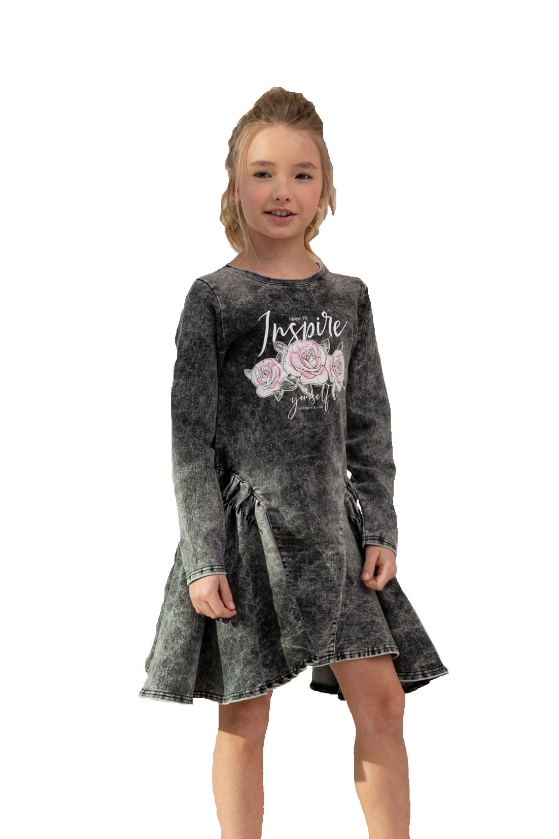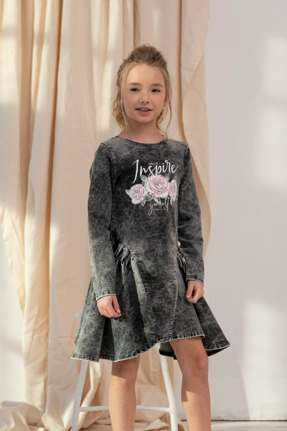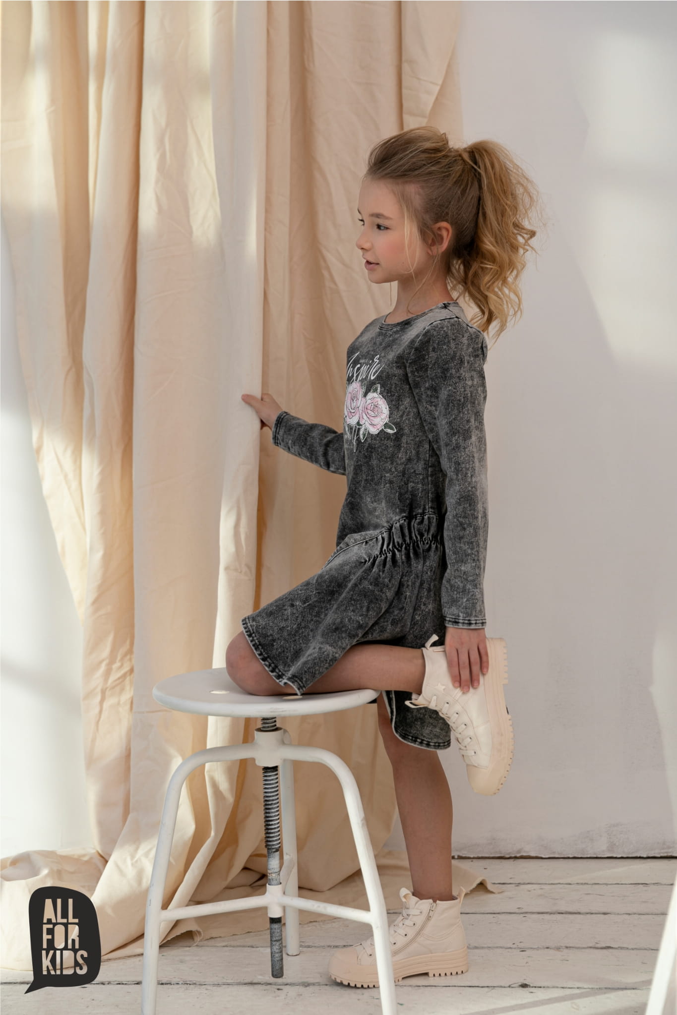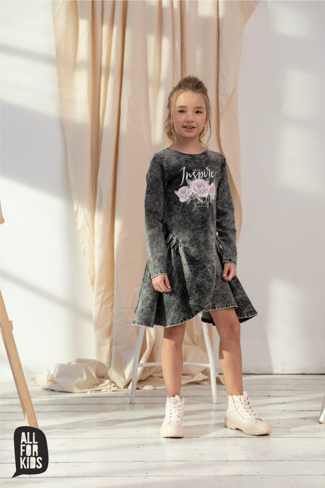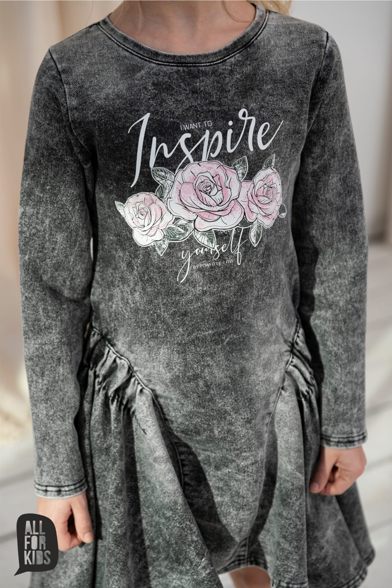 Sukienka jeansowa z falbanką grafitowa All For Kids