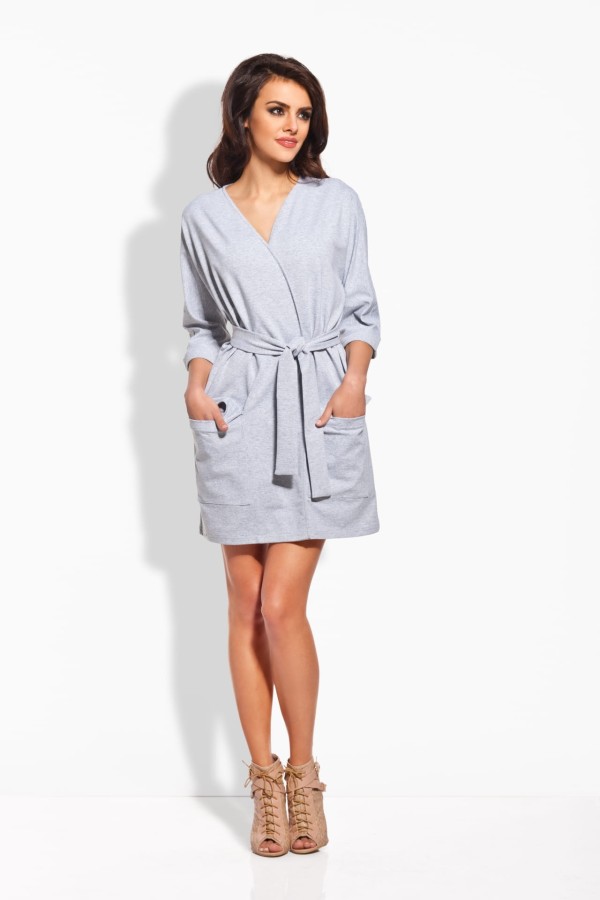 Sukienka z kieszeniami i paskiem szara Lemoniade