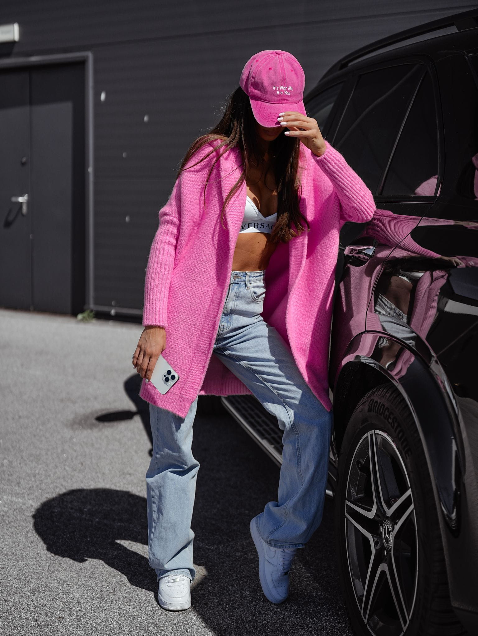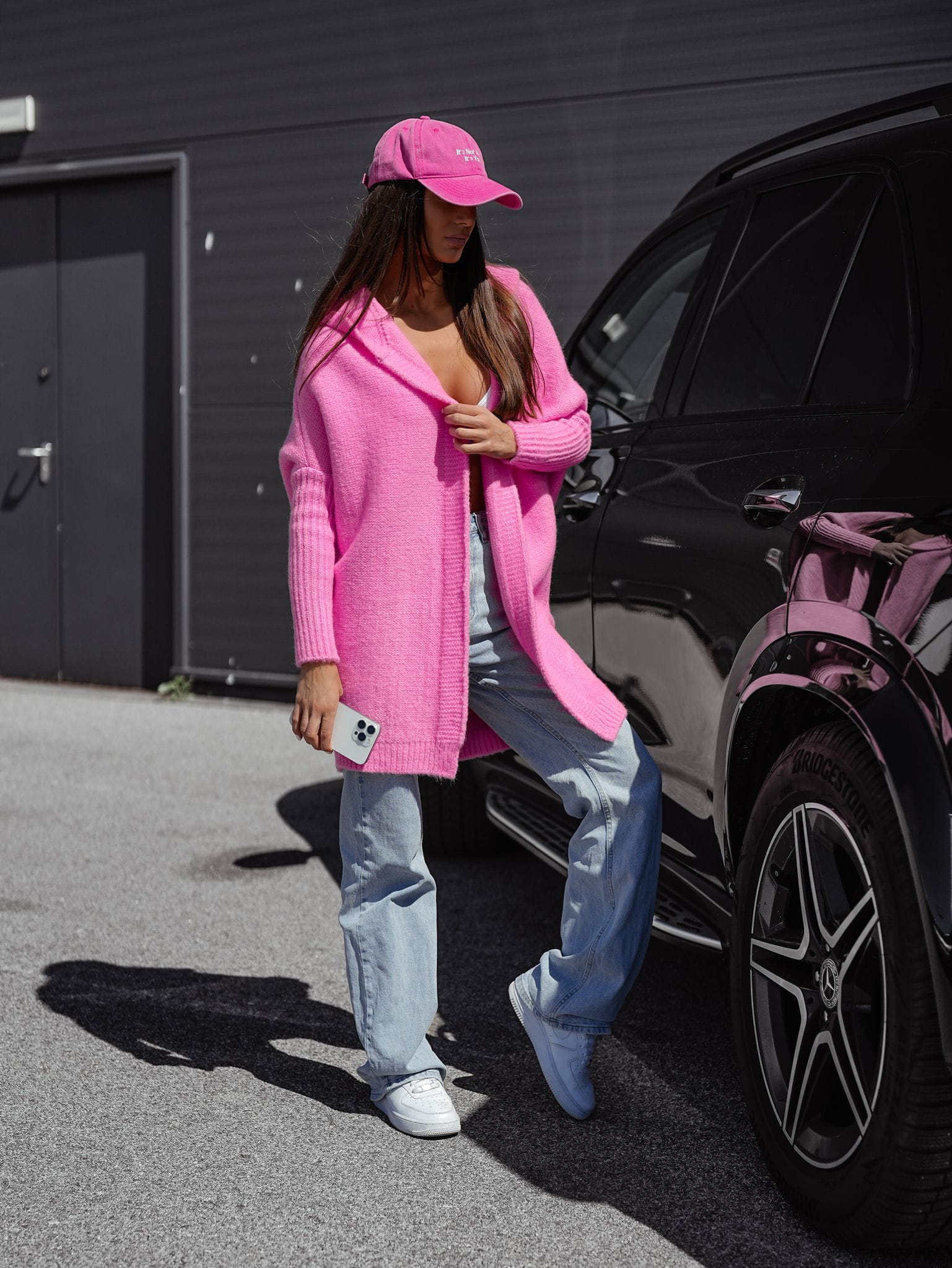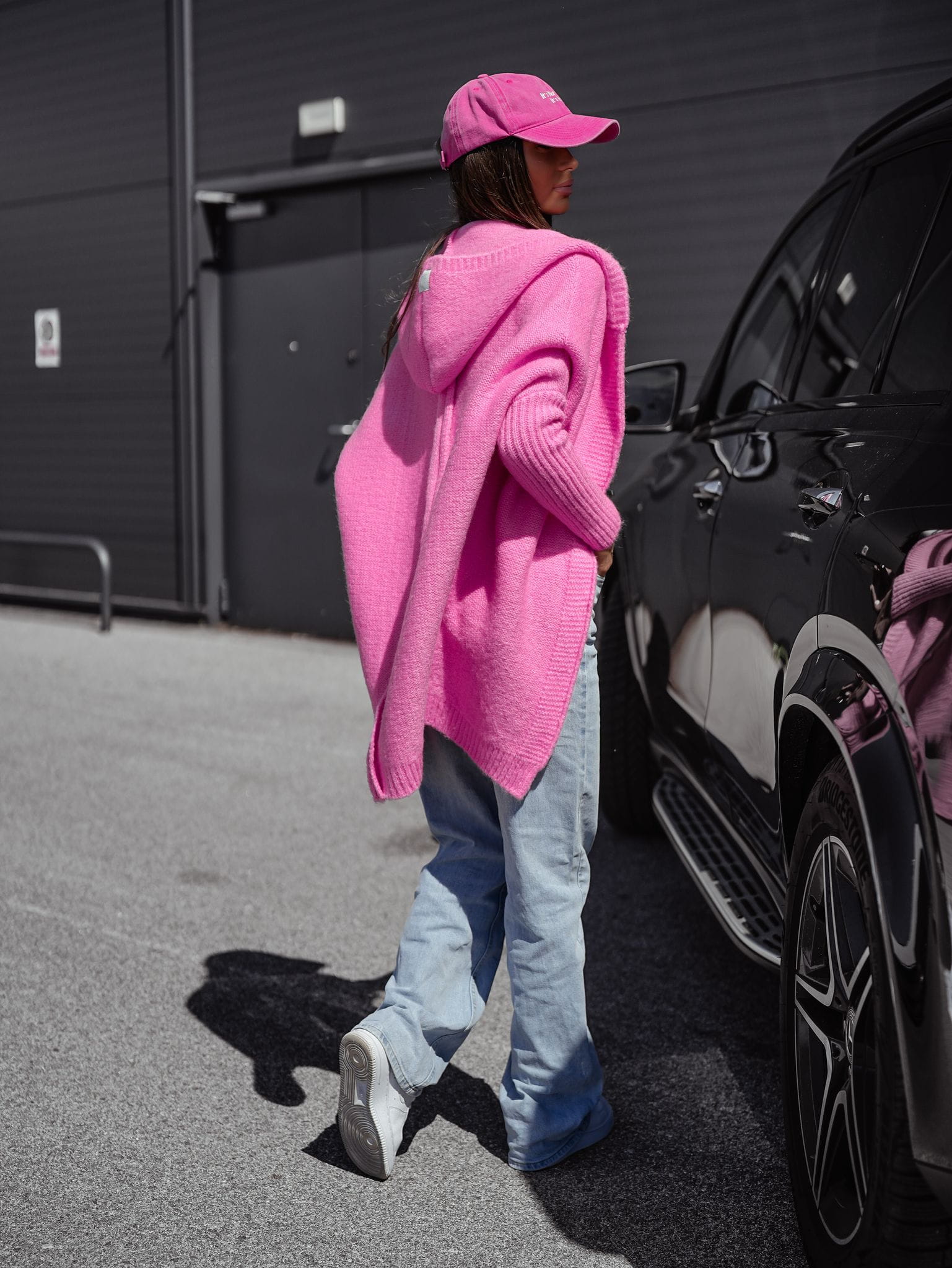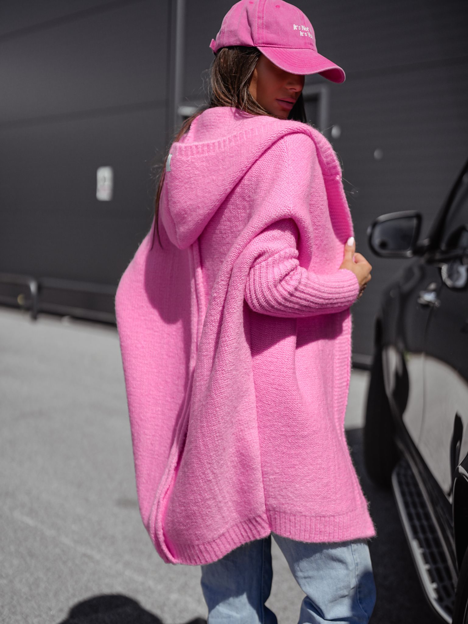 Sweter kardigan damski z kapturem oversize różowy Rio Me Gusta