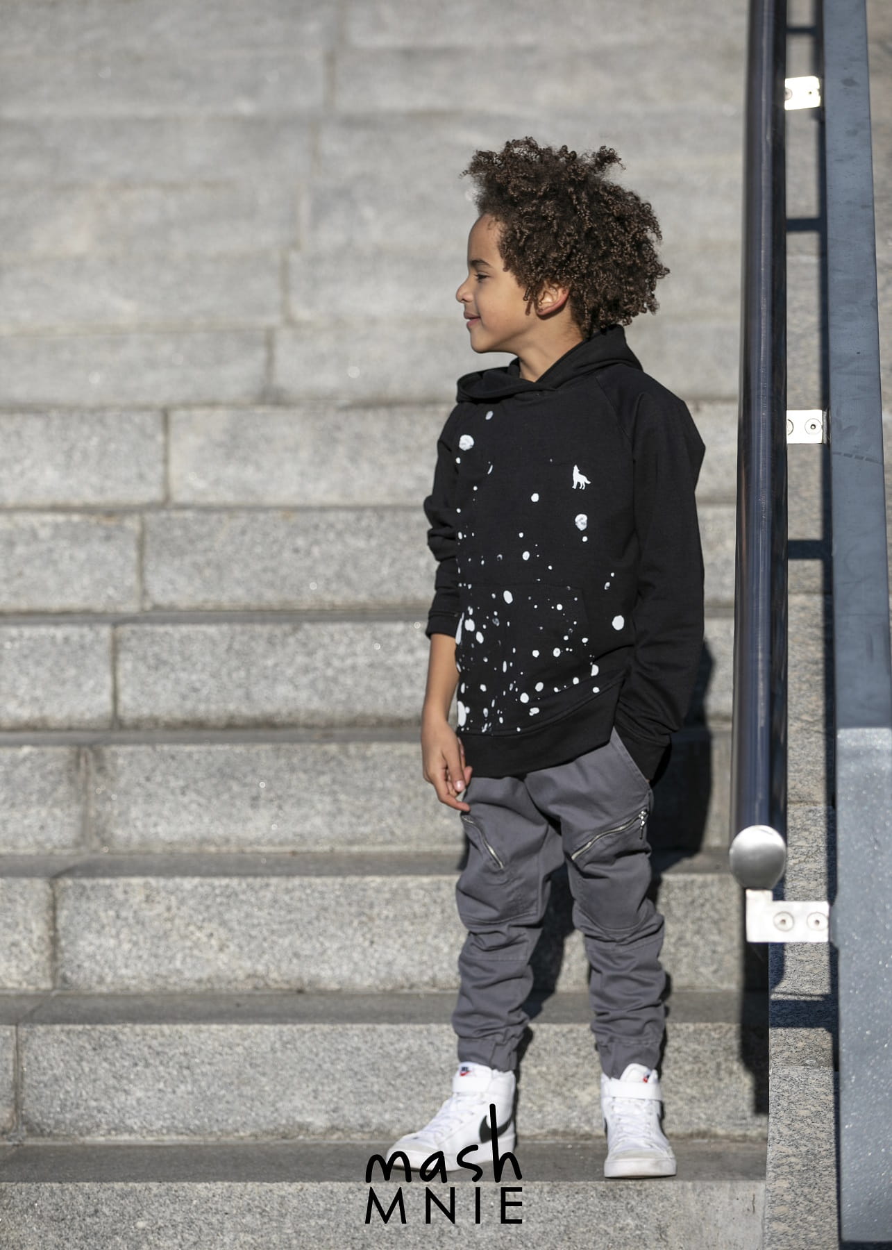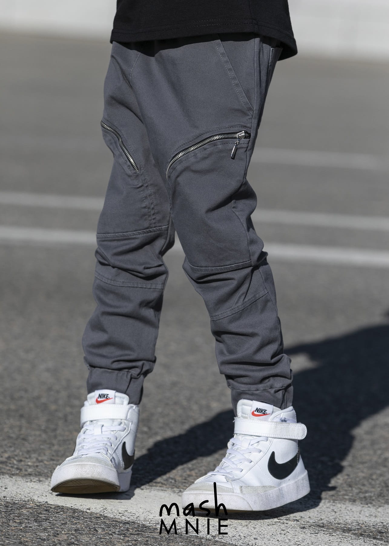 Szare spodnie z kieszeniami na zamek od polskiej marki Mash MNIE z kolekcji UNDER THE CITY. Modne spodnie dziecięce wykonane z wysokiej jakości, komfortowej w noszeniu tkaniny.