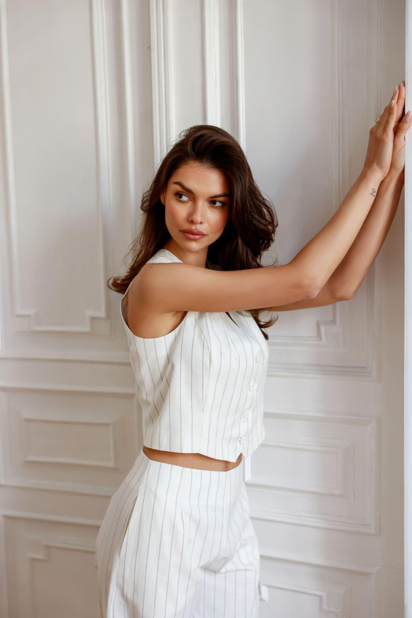 Szerokie spodnie i kamizelka komplet w paski biały Bopoco