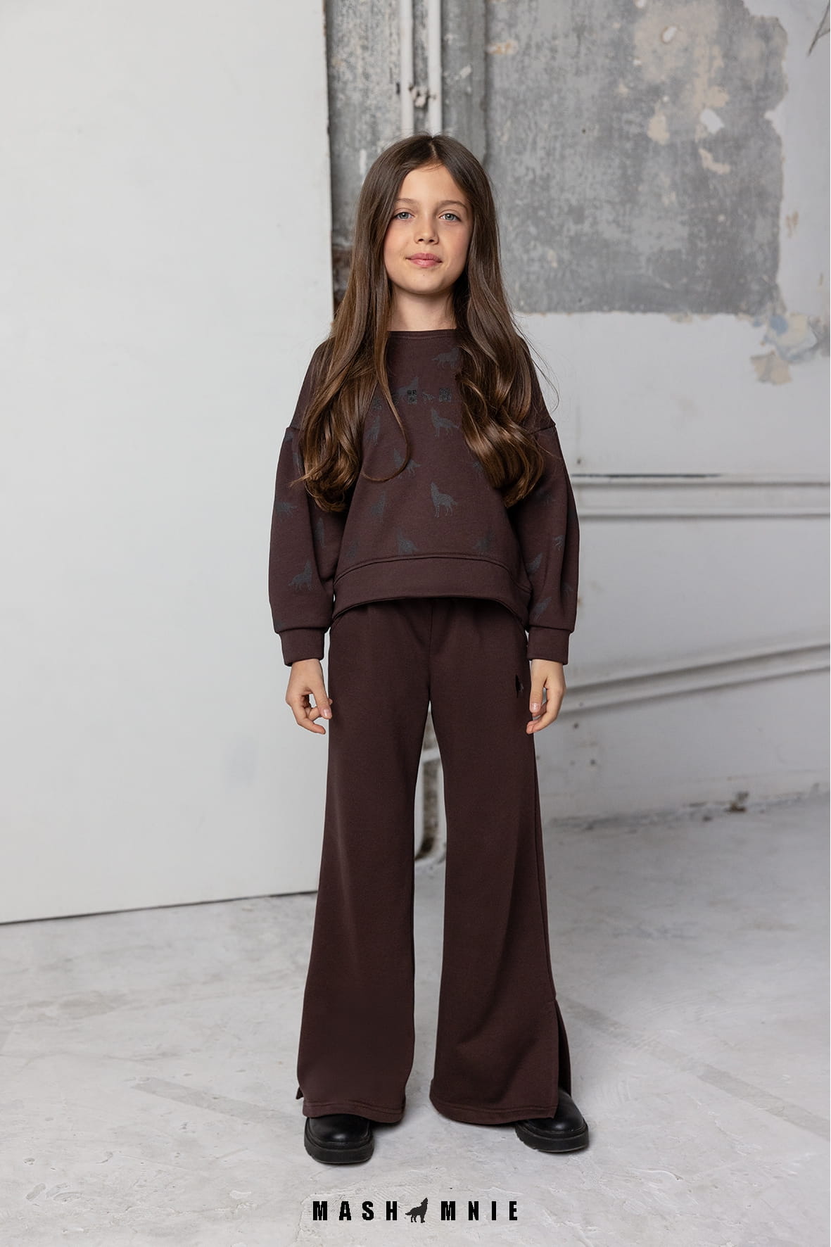 Szerokie spodnie z rozcięciem WOLF brązowe Mash MNIE