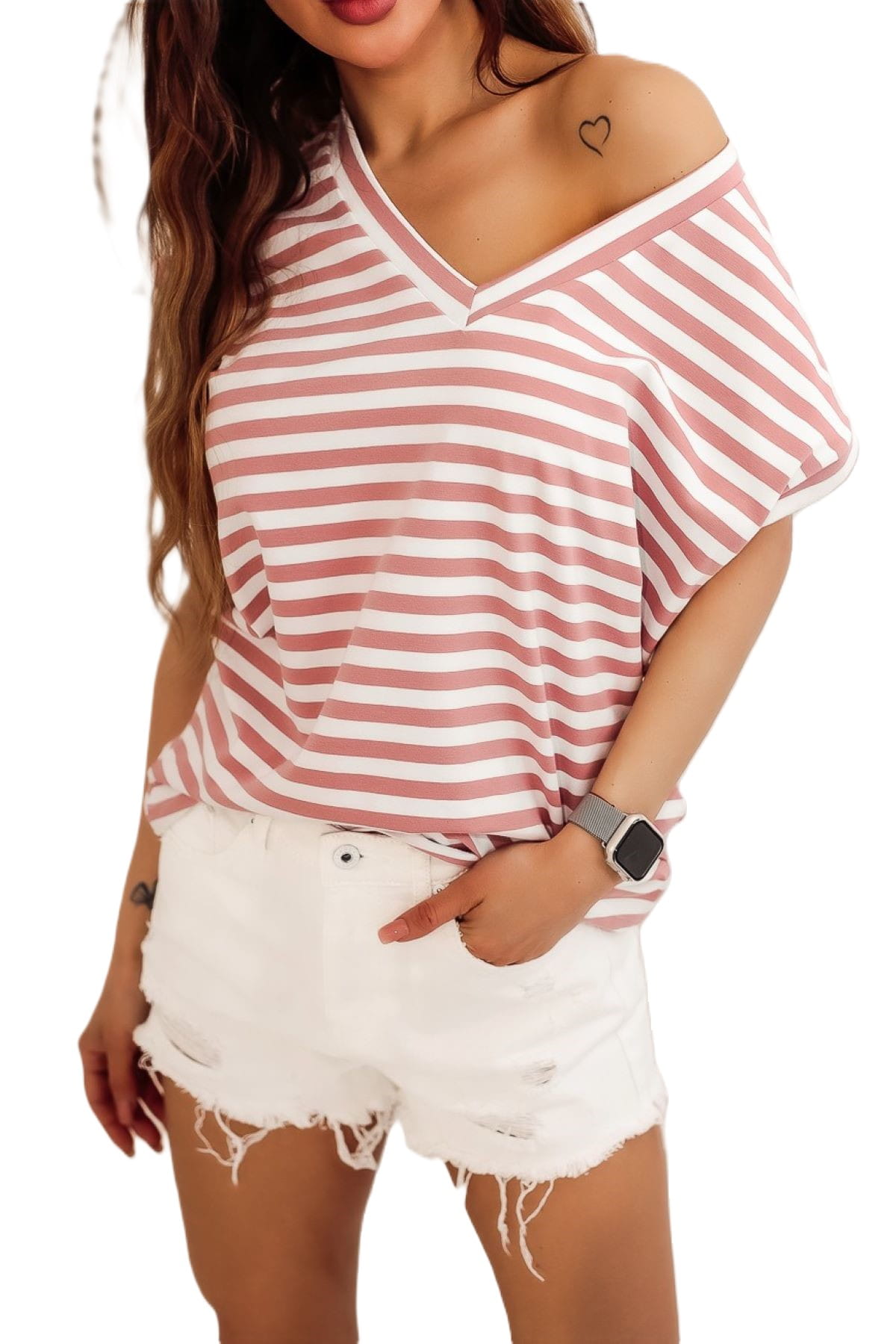Biały t-shirt w różowe paski to doskonała propozycja dla kobiet ceniących wygodę i casualowy styl.