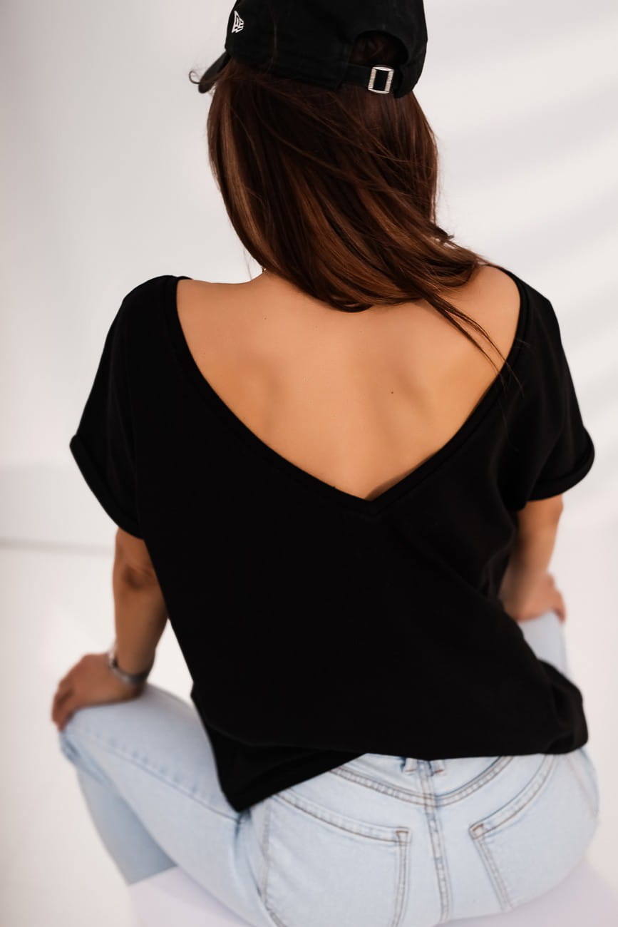 - delikatny dekolt V z przodu i większy dekolt V z tyłu